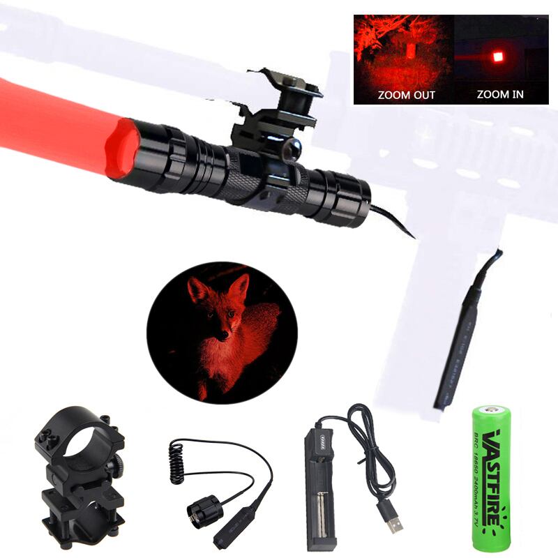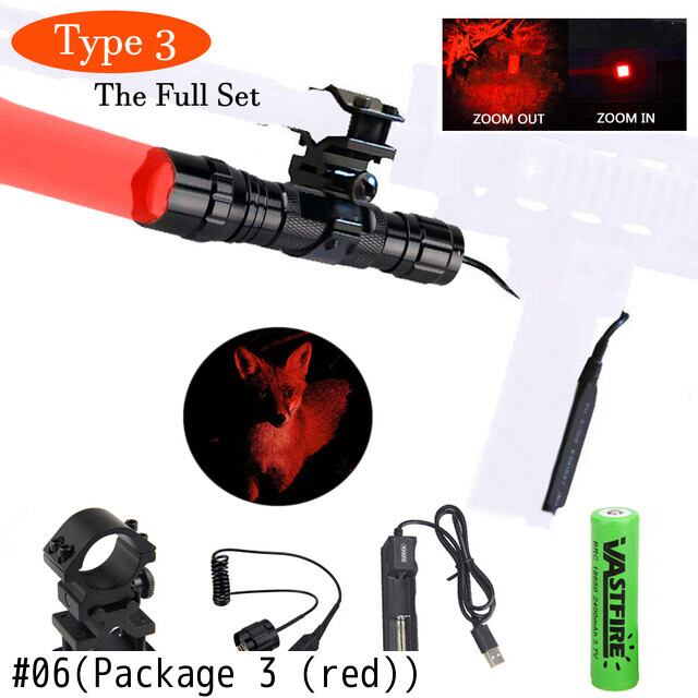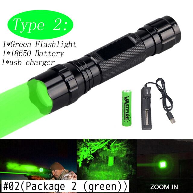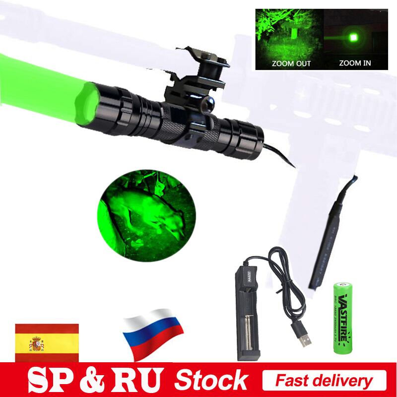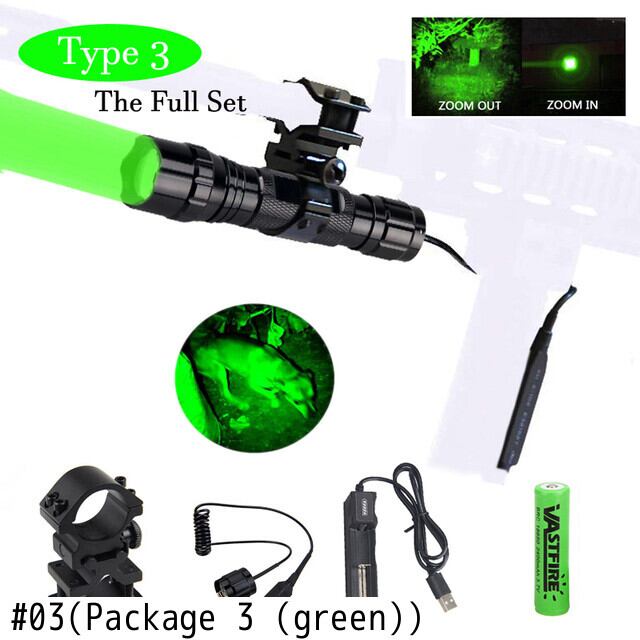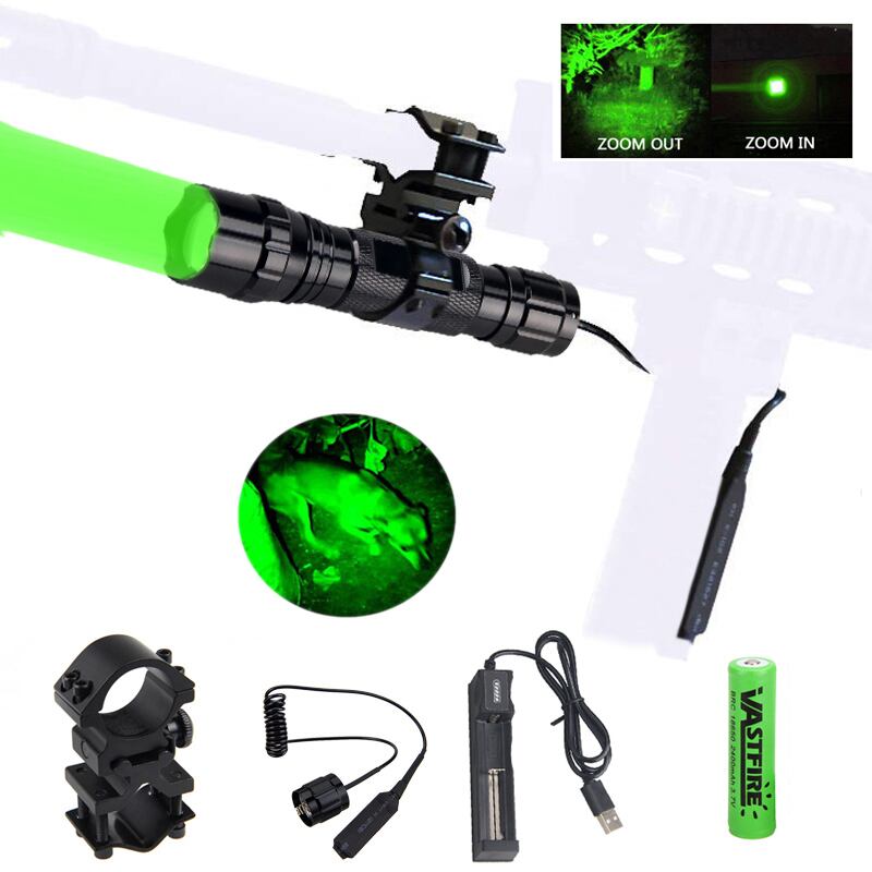 新作 300ヤードグリーン/レッドハンティング懐中電灯戦術的なズーム可能なエアソフトアルマス武器銃ライト+18650+充電器+ライフルスコープマウント+スイッチ