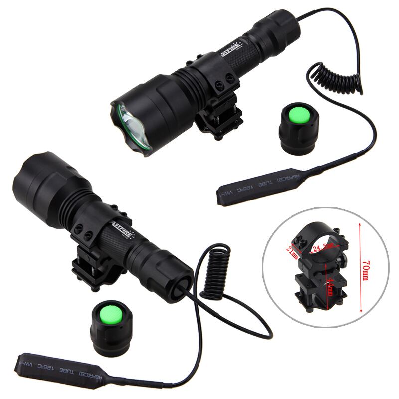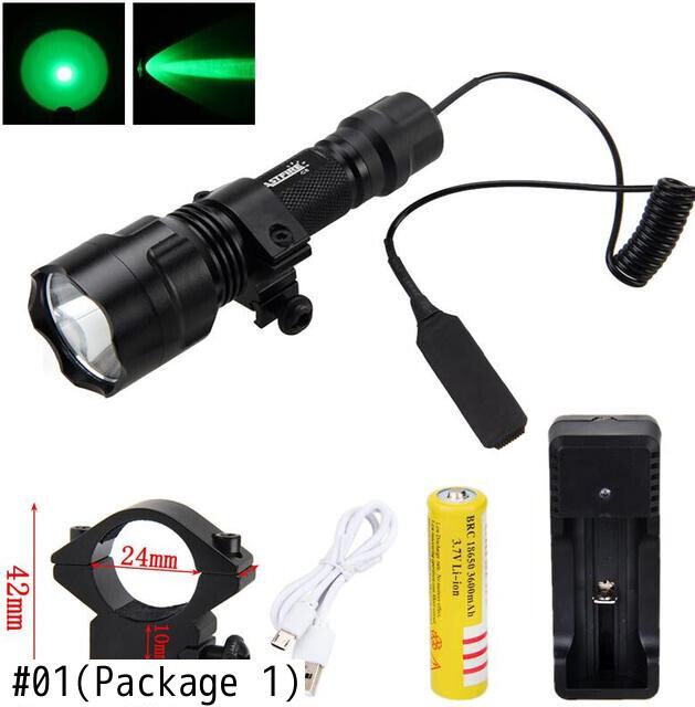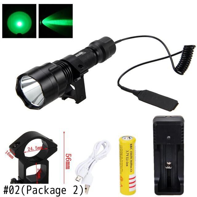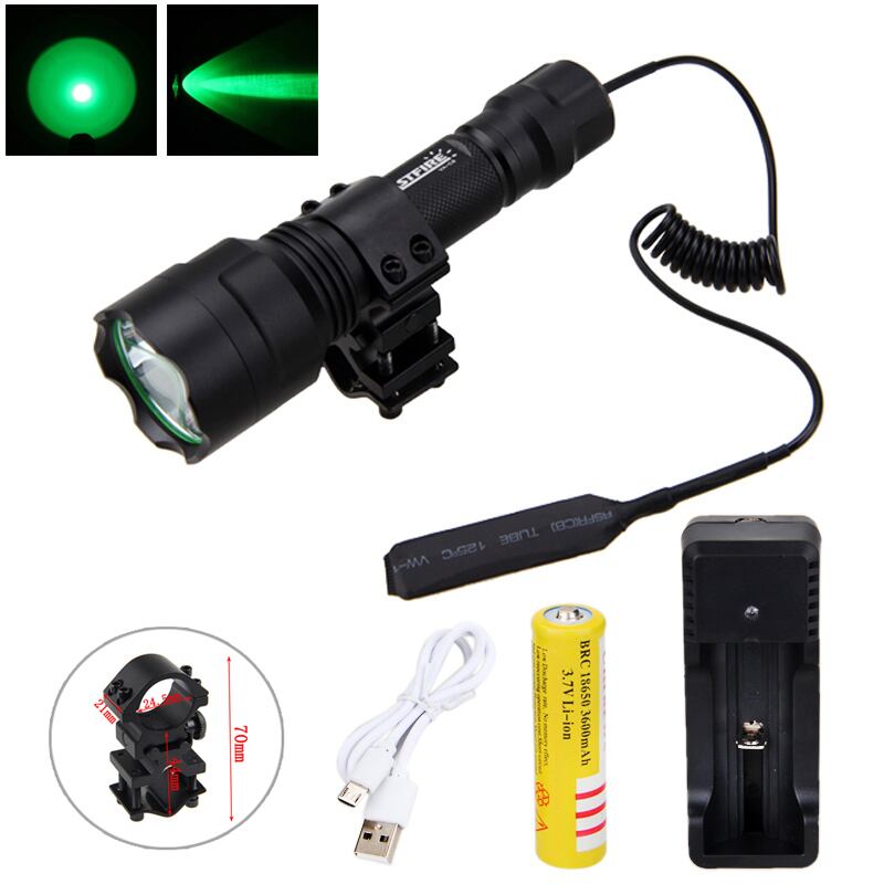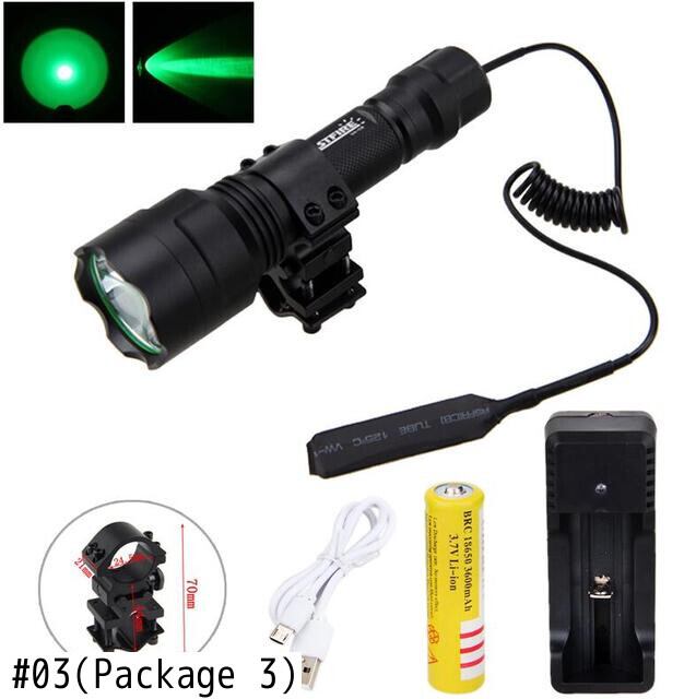 新作 LEDガンライトタクティカルXM-Lグリーンハンティング懐中電灯+ライフルスコープガンマウント+リモートプレッシャースイッチ+18650バッテリー+USB充電器
