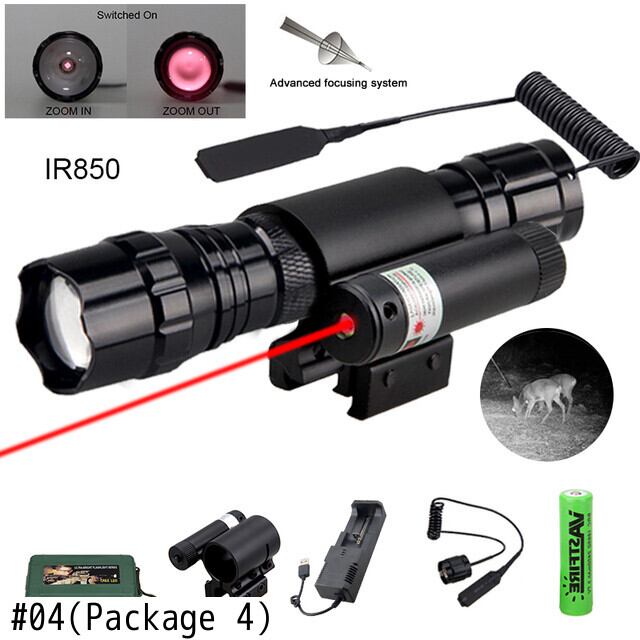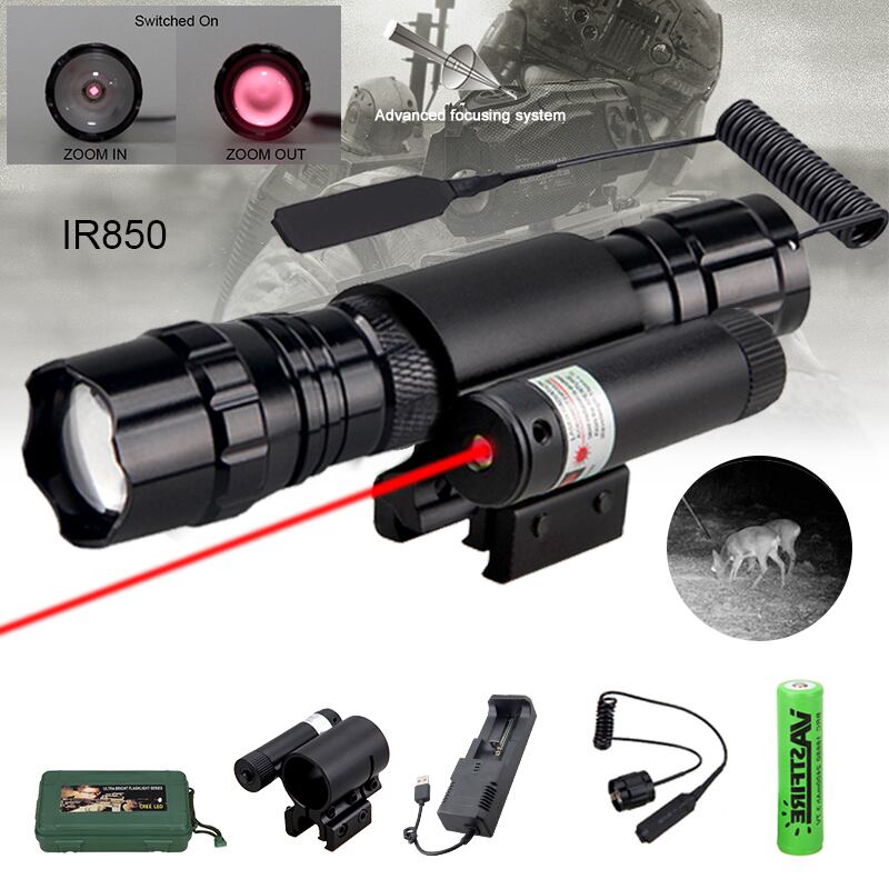 新作 IR850nmズーム可能なナイトビジョンハンティング懐中電灯赤外線放射兵器ガンライト+レッドレーザードットサイト+スイッチ+18650+充電器 | アウトドア キャンプ用品・テントやタープ・シュラフ、マットなどワクワクが止まらない【未来志向ショップ】