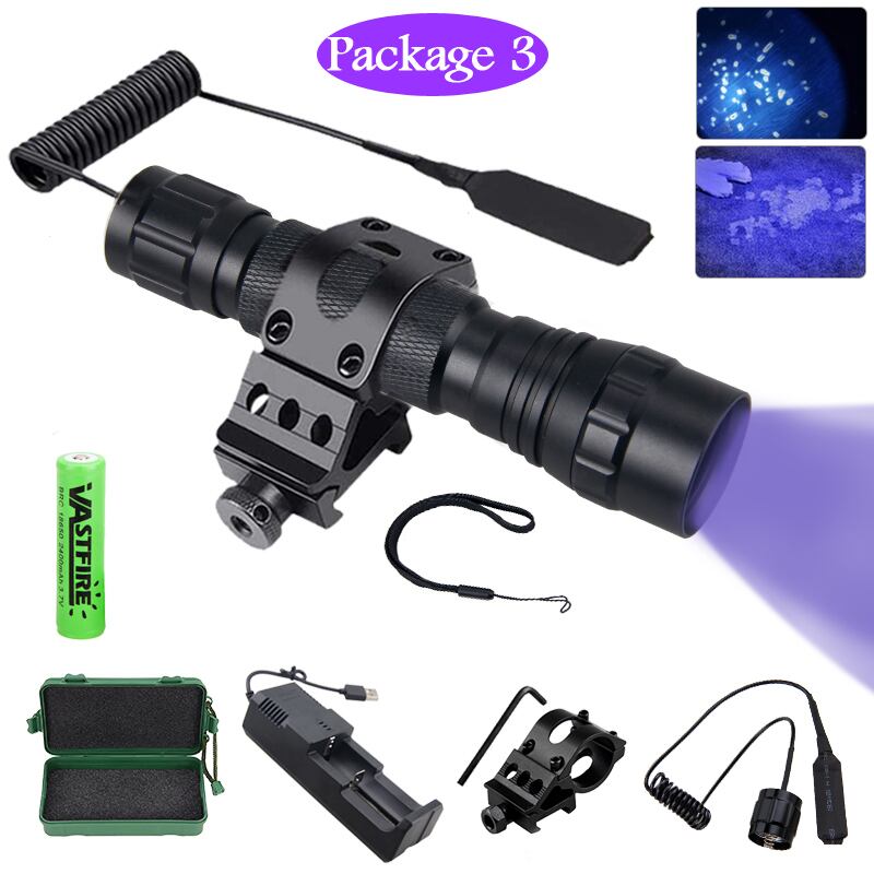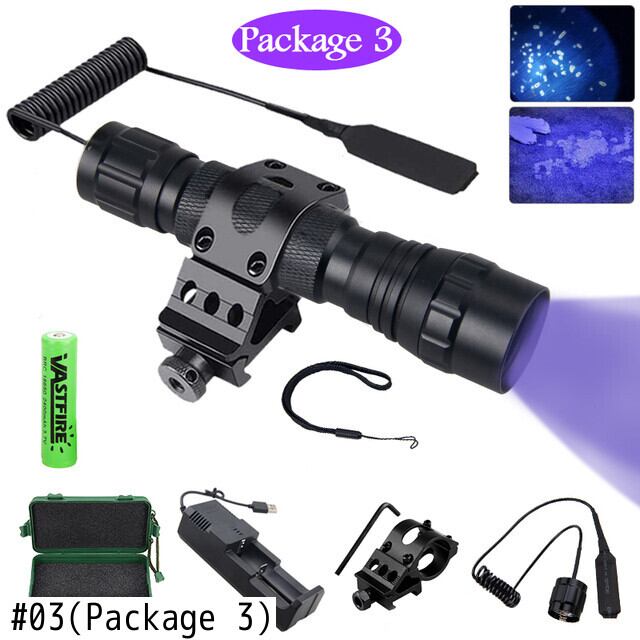 新作 10W365nm紫外線ハンティング懐中電灯UVウェポンガンライトインスペクトスカウトライトハンティングマーカーチェッカーライフルスコープマウント付き | アウトドア キャンプ用品・テントやタープ・シュラフ、マットなどワクワクが止まらない【未来志向ショップ】