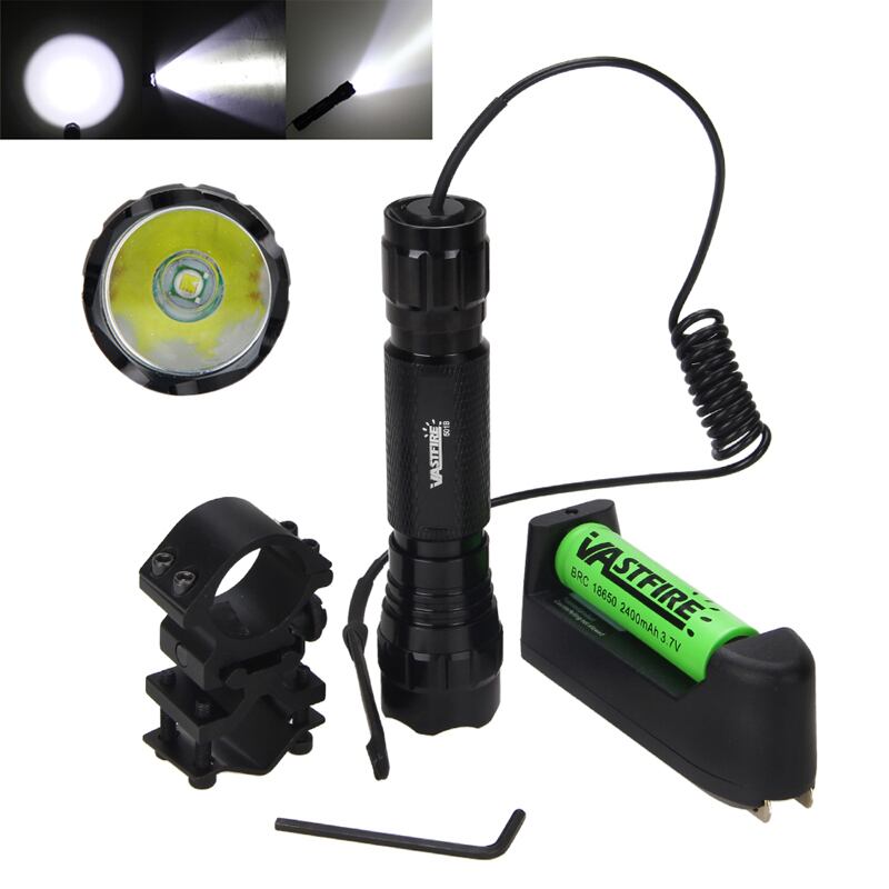 新作 ルーメンホワイトXMLQ5タクティカルハンティングライトアウトドアスポーツハンティング懐中電灯+ライフルスコープマウント+18650+充電器