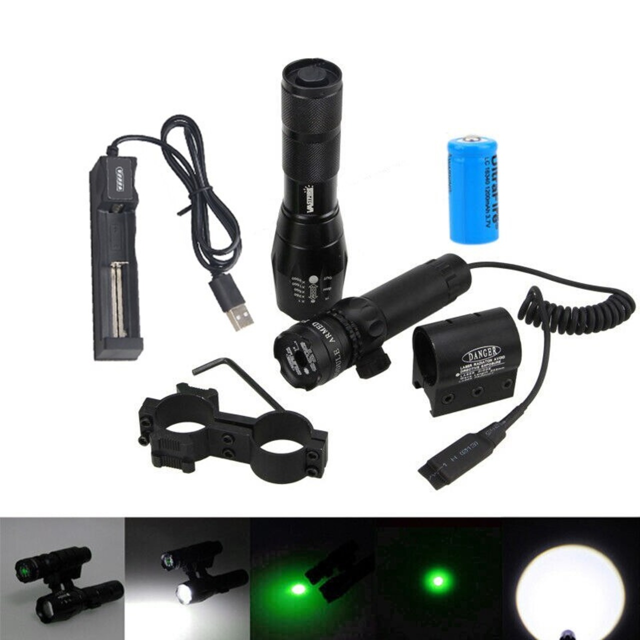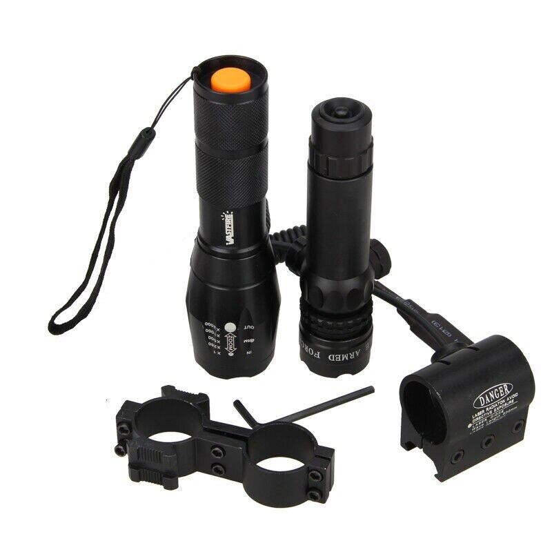 新作 6000LMズーム可能なハンティングウェポンガンライト+グリーン/レッドドットレーザーサイト+レールバレルライフルスコープマウント+圧力スイッチ+バッテリー+充電器 | アウトドア キャンプ用品・テントやタープ・シュラフ、マットなどワクワクが止まらない【未来志向ショップ】