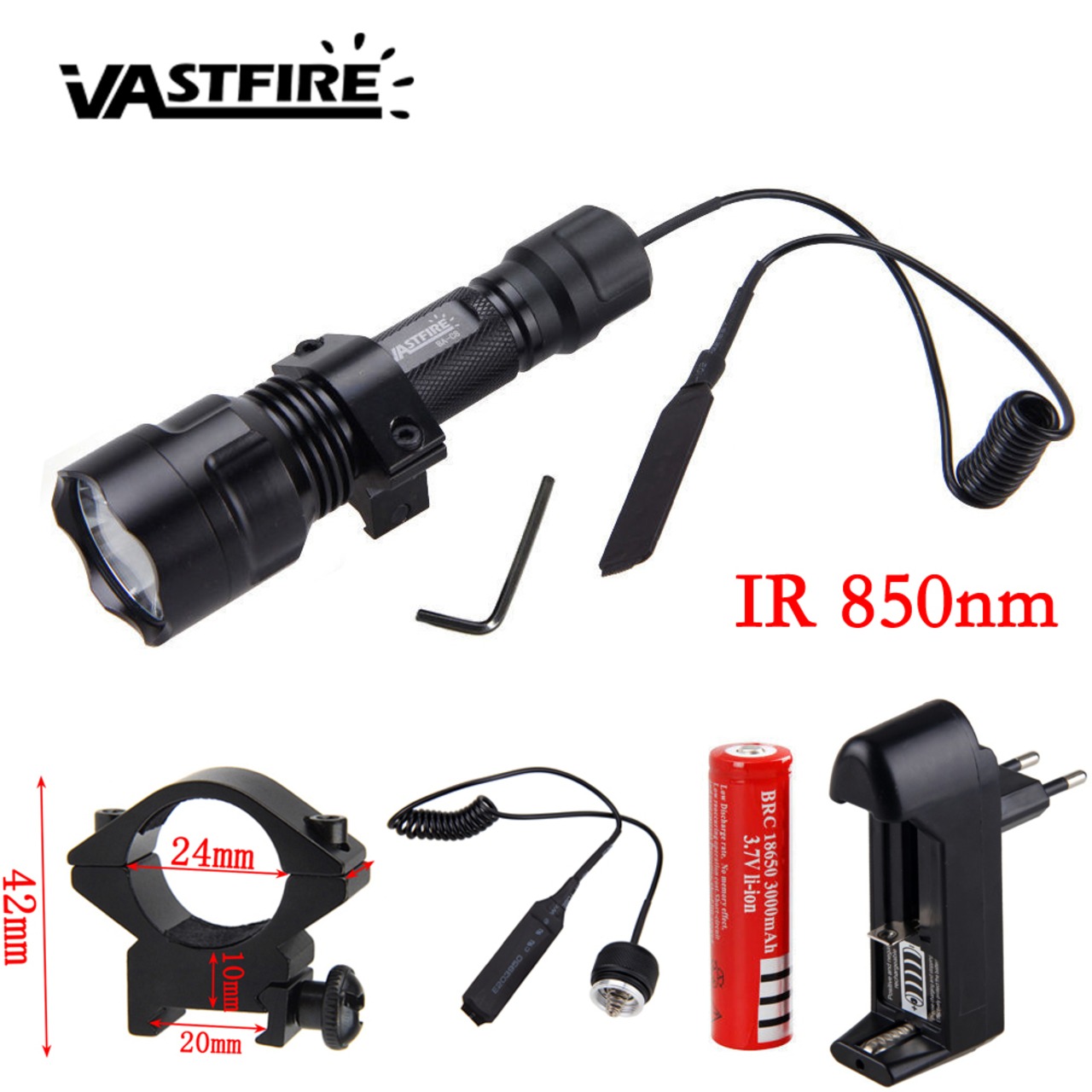 新作 5wIR850nmナイトビジョン懐中電灯防水赤外線LEDライトナイトビジョンデバイス+18650+充電器+スイッチ+ライフルガンマウント | アウトドア キャンプ用品・テントやタープ・シュラフ、マットなどワクワクが止まらない【未来志向ショップ】