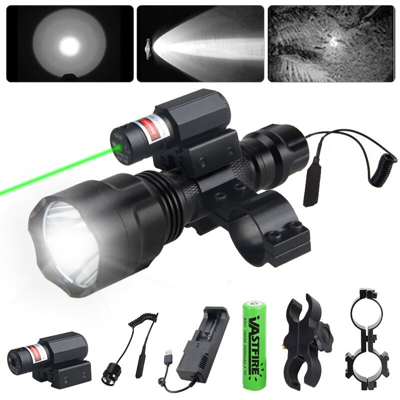 新作 C8200ヤードLEDハンティング懐中電灯戦術兵器ライト+緑/赤レーザードットサイト+スイッチ+2*20mmレールバレルマウント+18650+充電器 | アウトドア キャンプ用品・テントやタープ・シュラフ、マットなどワクワクが止まらない【未来志向ショップ】