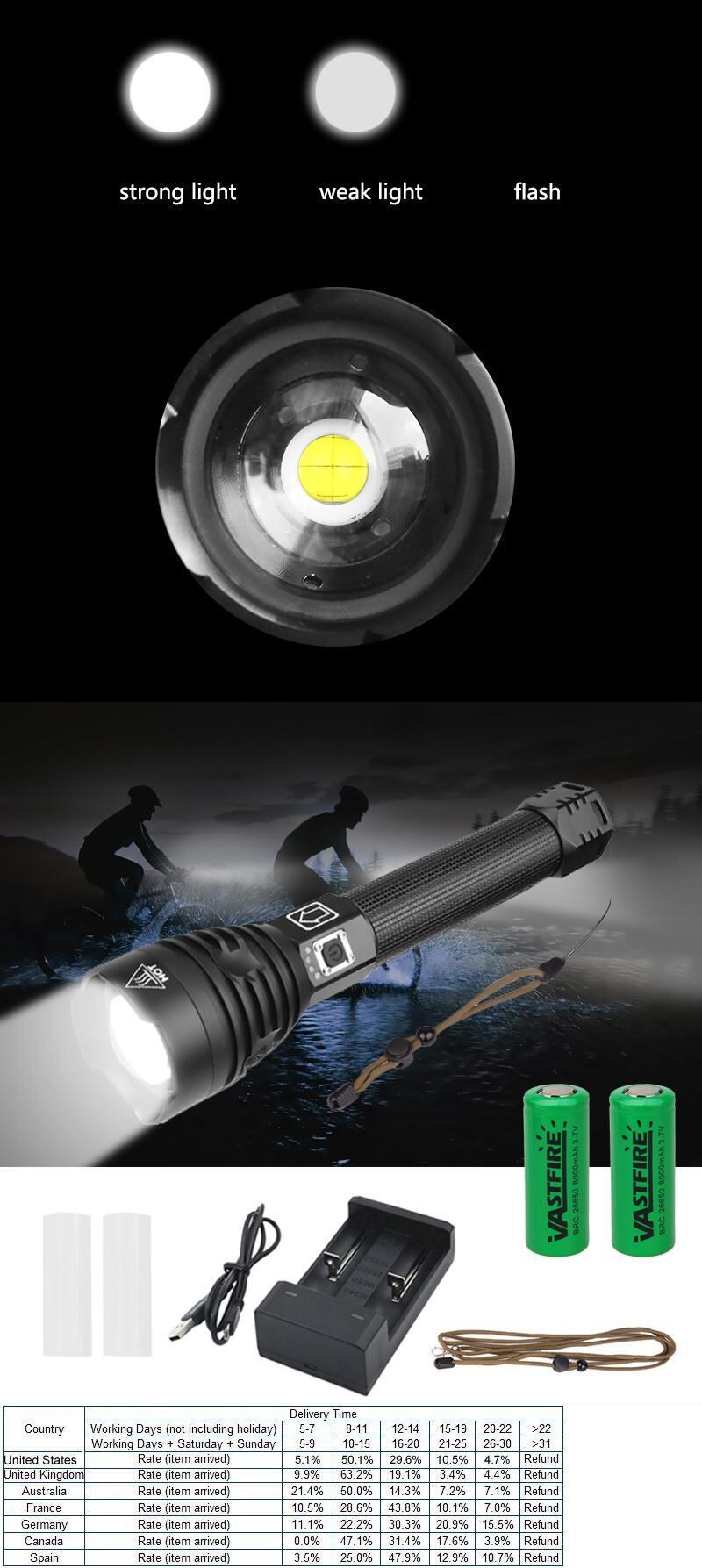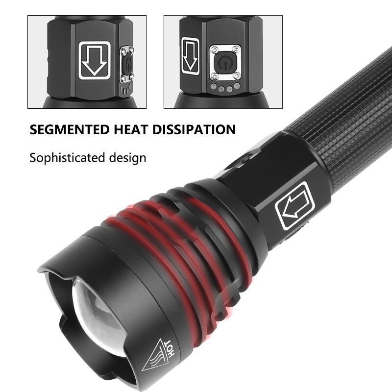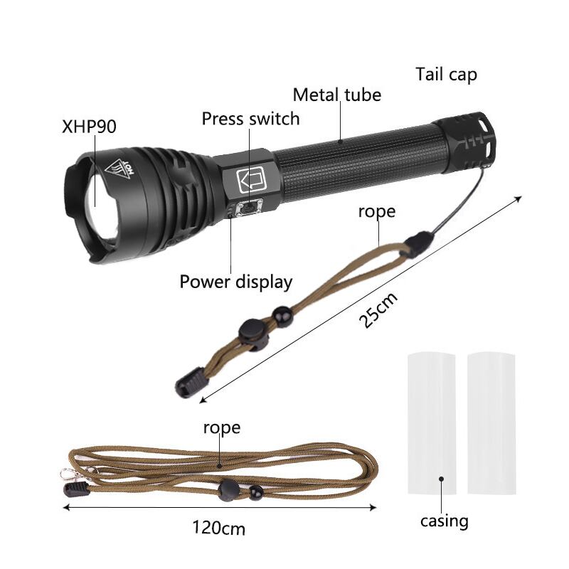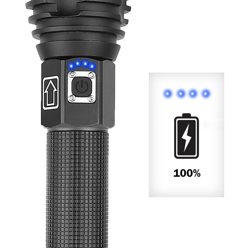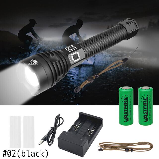 新作 ルーメンXHP90LED懐中電灯USB充電式ズーム可能戦術キャンプハンティングトーチライト+2* 26650+USB充電器 | アウトドア キャンプ用品・テントやタープ・シュラフ、マットなどワクワクが止まらない【未来志向ショップ】