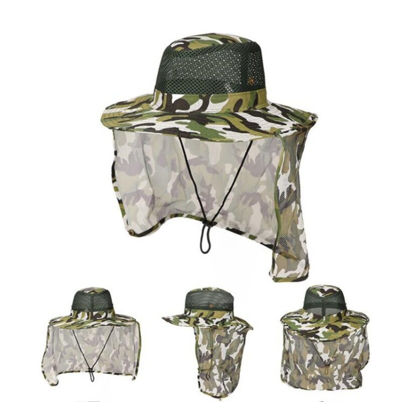 新作 クリアランスアウトドアフィッシングハットワイドブリムマン通気性メッシュフィッシングキャップハイキングハットカモフラージュサンUVプロテクションシェードハット キャンプSportHappy_Store14496746358