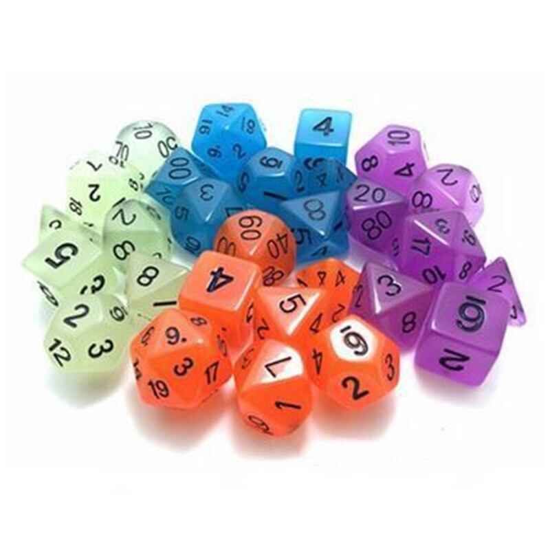 新作 7PCルミナスダイスマルチサイドポリヘドラルダイスセットD4D6D8 D10 D%D12D20デジタルダイスファミリーパーティーテーブルゲームキッズおもちゃ