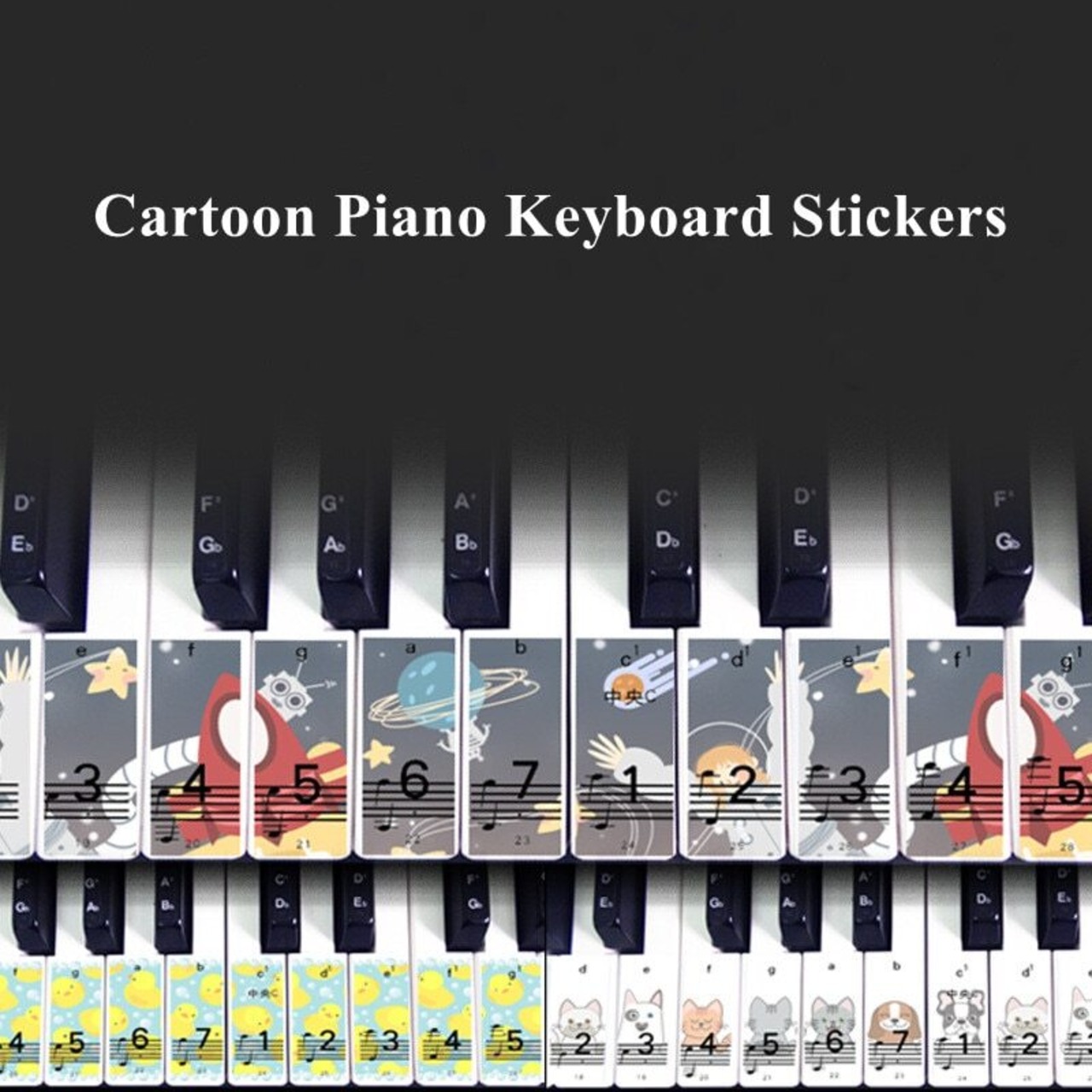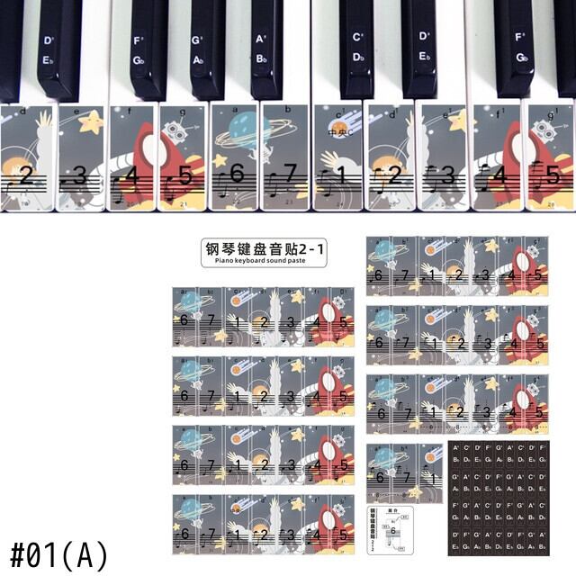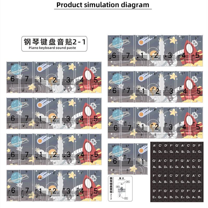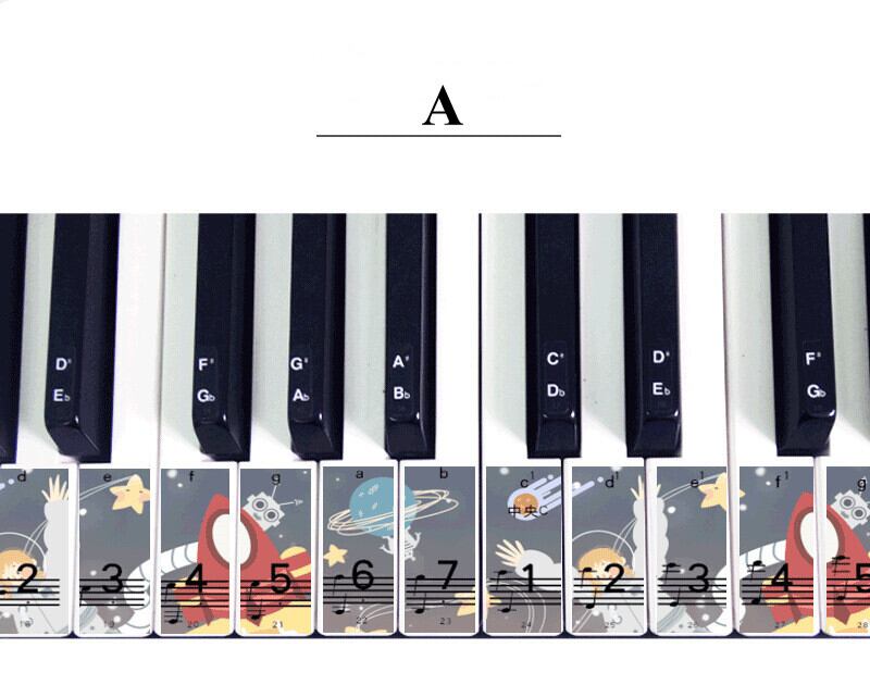 新作 かわいい漫画のピアノキーボードステッカー88/76/61/54/49キーペーストデジタル/ハンドロールピアノスペクトラムステッカーシンボルデカールノート