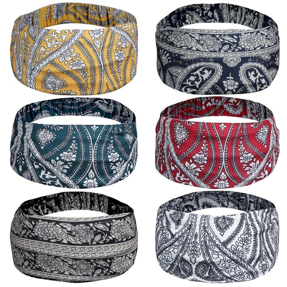 新作 ワイドスポーツヘッドバンドスウェットバンドプリント女性ランニングヨガヘアバンドヘッドウェアストレッチ包帯アウトドアスポーツサイクリングヘッドスカーフ