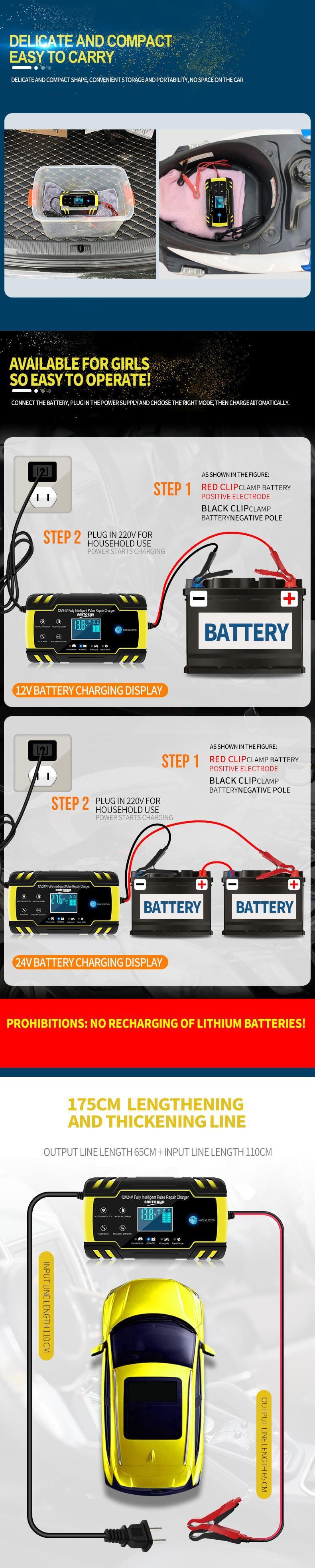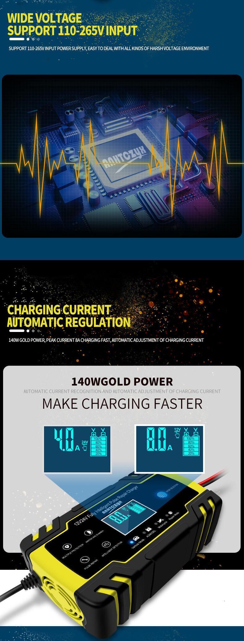 12V-24V 8A 全自動カーバッテリー充電器電源パルス修理充電器デジタル LCD ディスプレイカーオートバイ