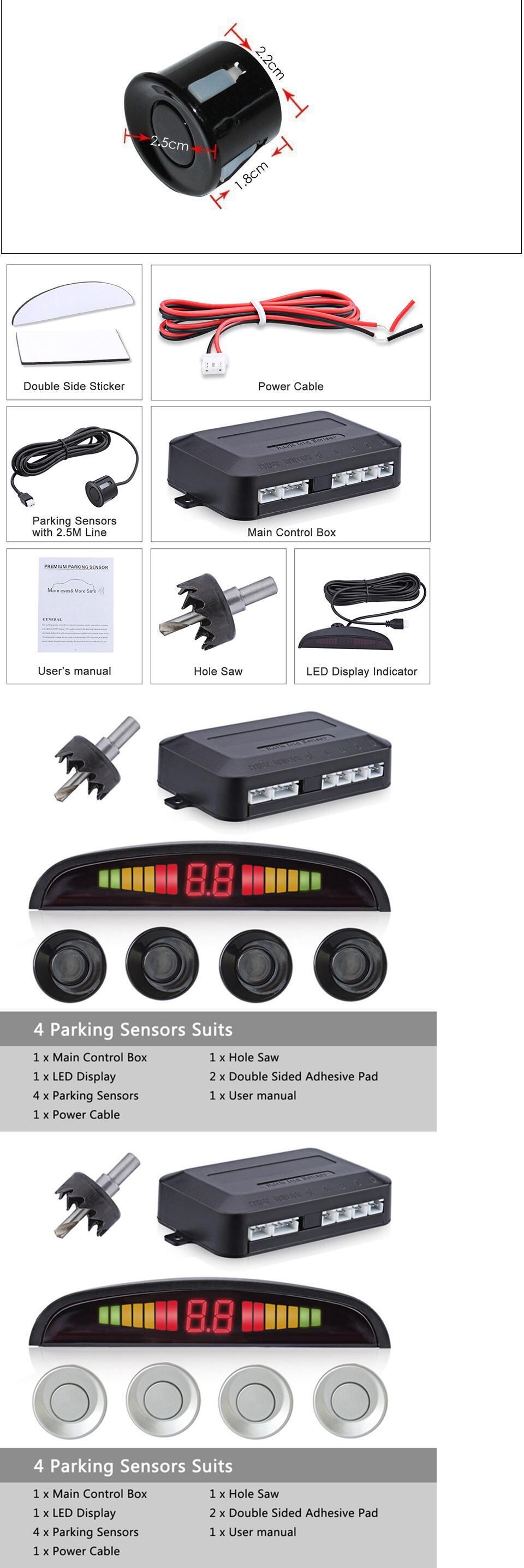 車の自動車パークトロニック LED パーキングレーダー 12V 22mm ユニバーサルセンサーバックライトディスプレイリバースバックアップレーダーモニターシステム | アウトドア キャンプ用品・テントやタープ・シュラフ、マットなどワクワクが止まらない【未来志向ショップ】