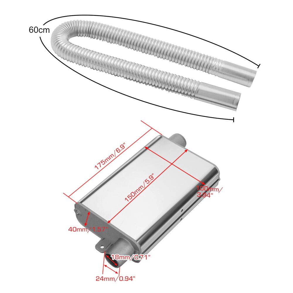 アップグレードされた 24 ミリメートル車の排気管マフラーサイレンサー + 60cm 排気管 Eberspacher/WEBASTO/中国の空気ディーゼルヒーター | アウトドア キャンプ用品・テントやタープ・シュラフ、マットなどワクワクが止まらない【未来志向ショップ】