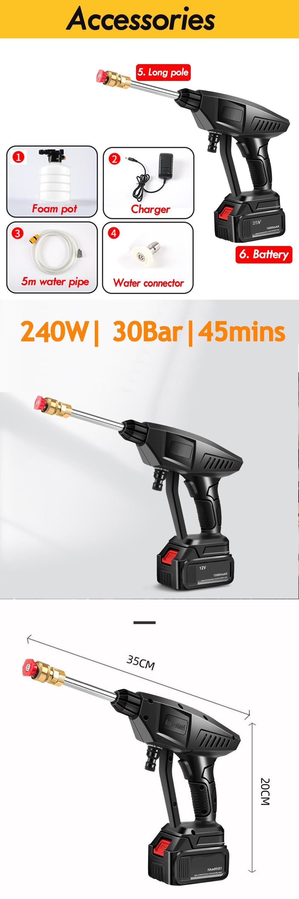 コードレス洗車機 25V 圧力洗車水鉄砲泡発生器ハンドヘルド自動スプレー家庭菜園ウォータージェットガン | アウトドア キャンプ用品・テントやタープ・シュラフ、マットなどワクワクが止まらない【未来志向ショップ】