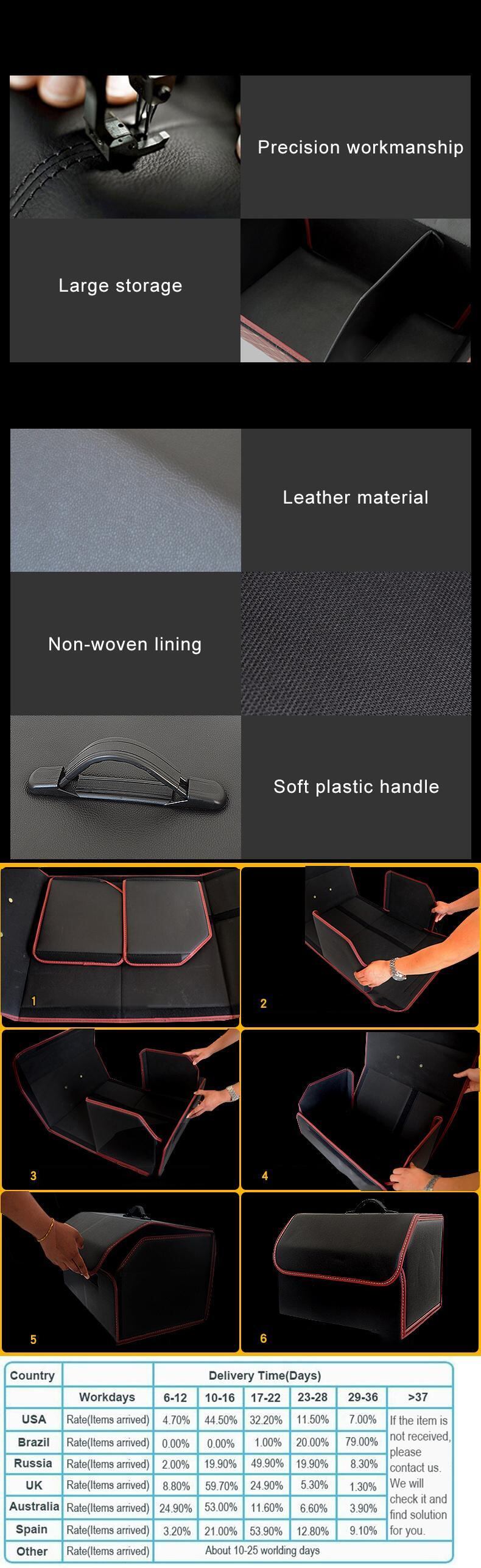 黒の車のトランクの収納ボックス PU レザー大型収納袋折りたたみオーガナイザー ボックス車の防水自動車の付属品 | アウトドア キャンプ用品・テントやタープ・シュラフ、マットなどワクワクが止まらない【未来志向ショップ】