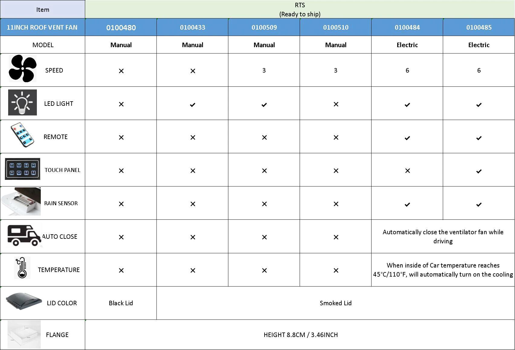 TYTXRV 11 '' 12V CE キャラバン アクセサリー RV 熱放散排気ファン ステンレス鋼防虫ネット付き RV キャンピングカー トレーラー