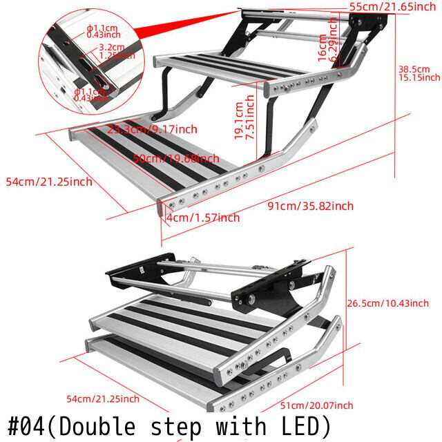 TYTXRV キャラバン 折りたたみ式アルミニウム合金滑り止めはしご シングル ダブルレイヤー LED 照明付き キャンピングカー アクセサリー