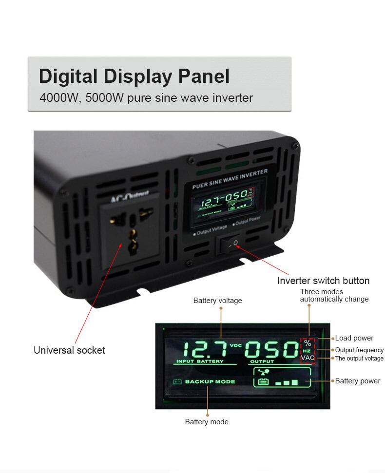 ポータブル純粋な正弦波インバーター 4000W 5000W 7000W 電源 DC 12V から AC 220V 電圧 50HZ コンバーター ソーラーカーインバーター