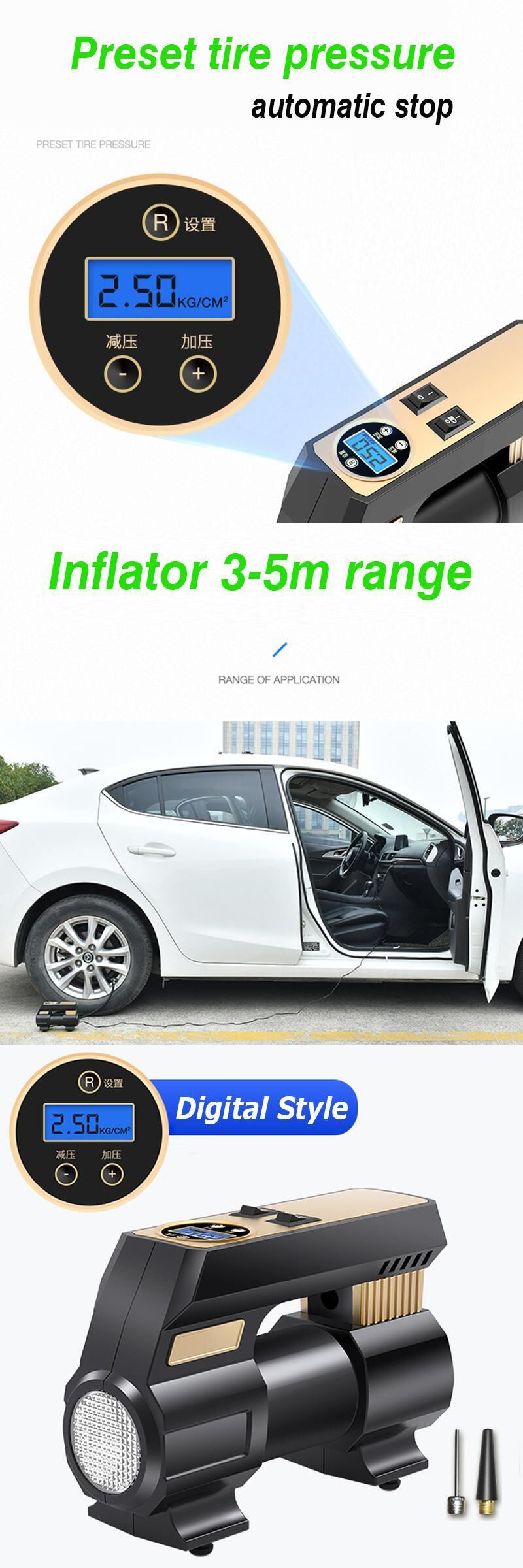 車の空気圧縮機 120 ワット 30S 高速インフレータ空気ポンプ自動車タイヤ Pumb 車オートバイ自転車 LED ライトタイヤポータブルポンプ