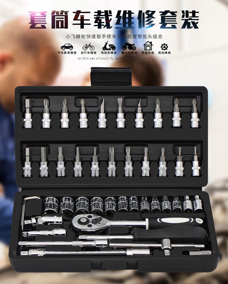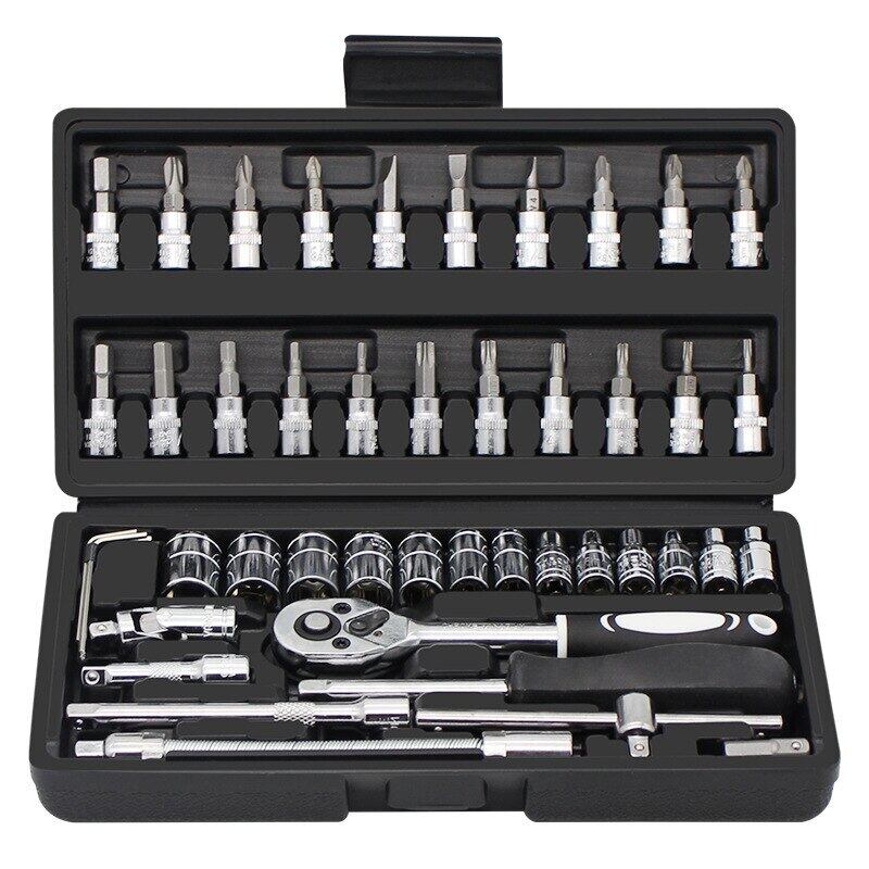 46 点セット 高速ラチェット ケーシング レンチ 車修理用ドライバー ユニバーサル コンビネーション ツールボックス 機械/家庭用/自動修理 | アウトドア キャンプ用品・テントやタープ・シュラフ、マットなどワクワクが止まらない【未来志向ショップ】