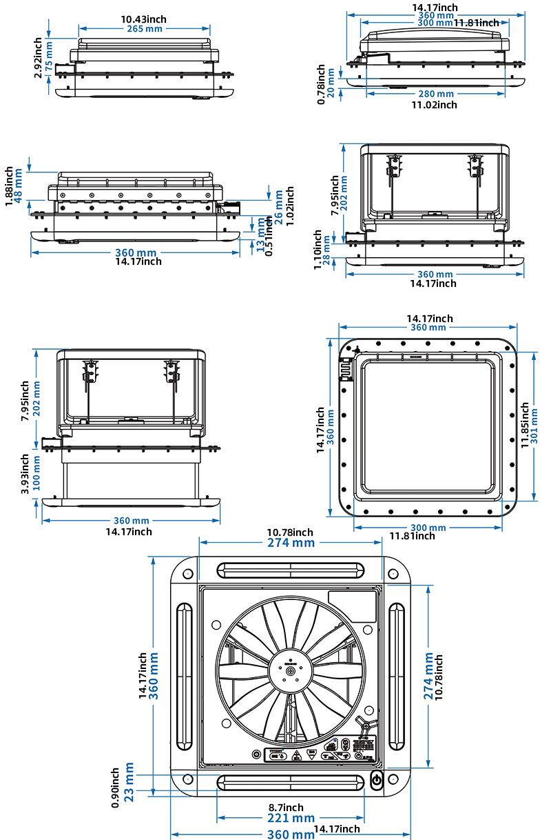 11 インチ TYTXRV CE Electric ウォールパネルリモコン付き キャラバンアクセサリー Rv ベント キャンピングカーベント LED 付き 12 ボルトファン