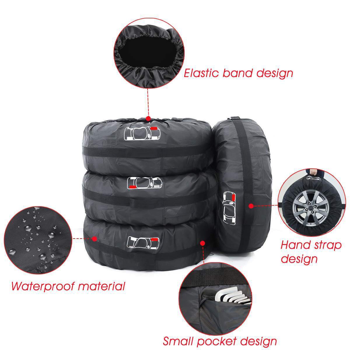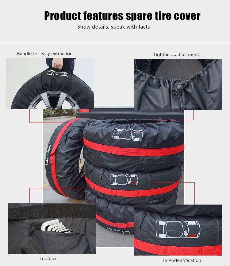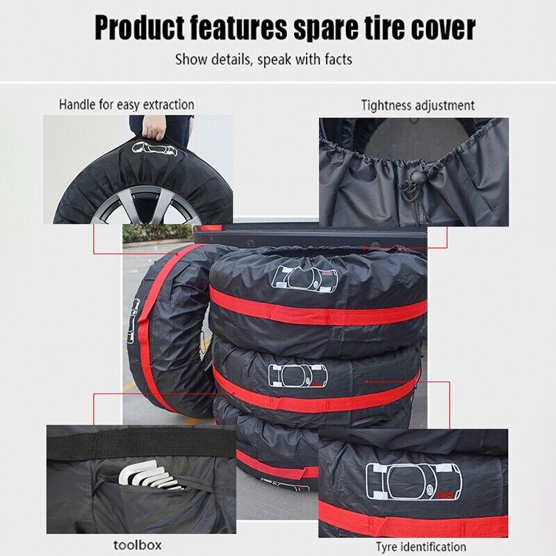 4 個 13-16 インチ車のスペアタイヤカバー収納袋キャリートートポリエステルタイヤ防塵プロテクター車のホイール保護カバー