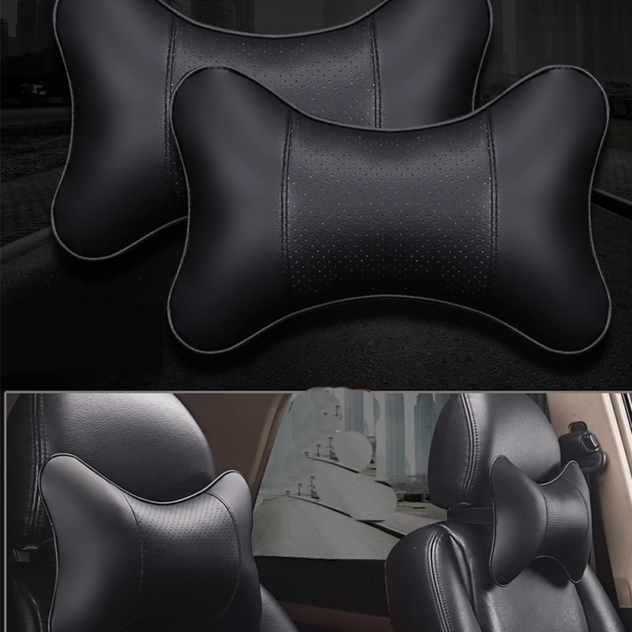 車のヘッドレスト枕両面 Pu レザー首記憶枕ヘッド サポート プロテクター クッション腰椎枕ユニバーサル アクセサリー | アウトドア キャンプ用品・テントやタープ・シュラフ、マットなどワクワクが止まらない【未来志向ショップ】