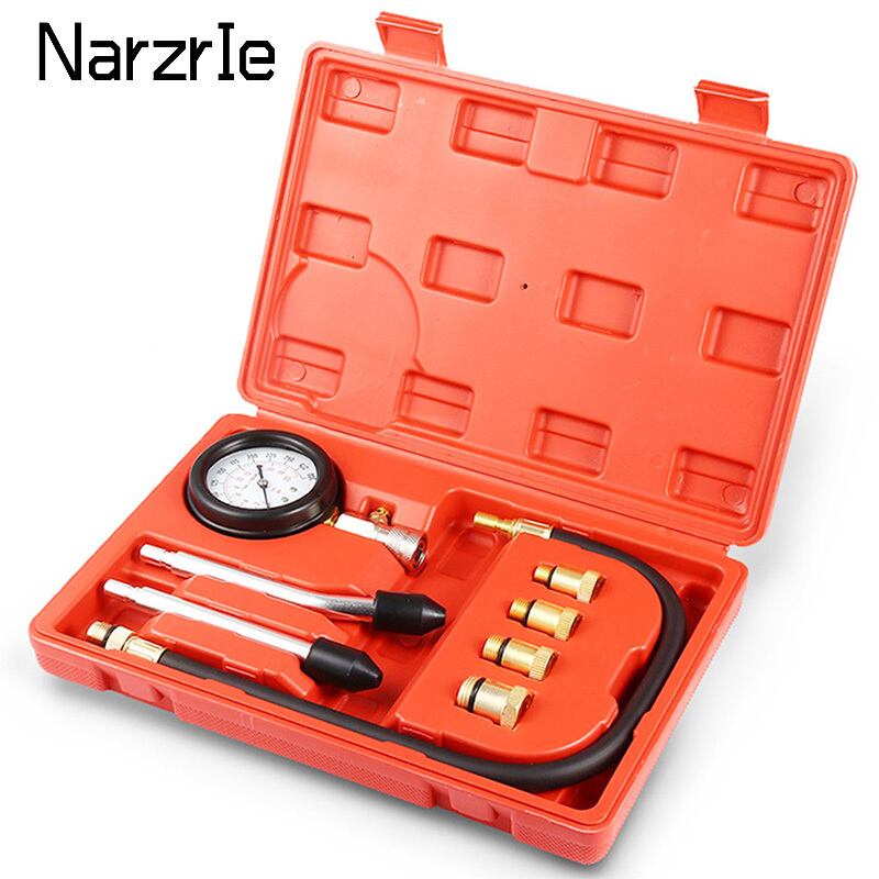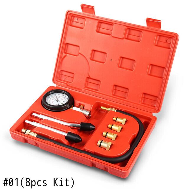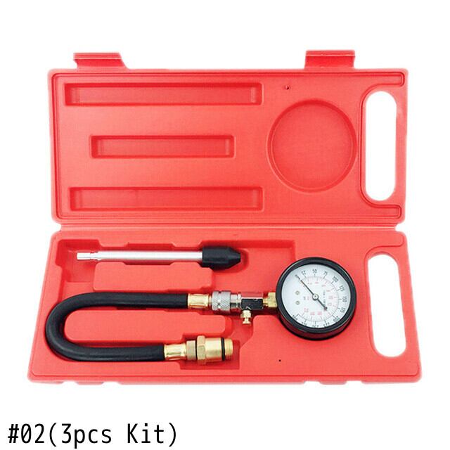 3/8 個ガソリンエンジン圧力計テスターキットセット圧縮漏れ診断圧縮計ツール自動ケース