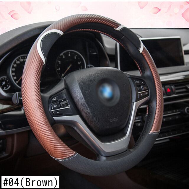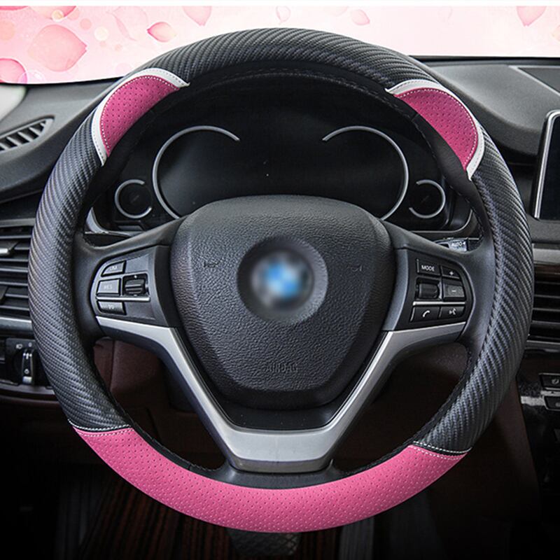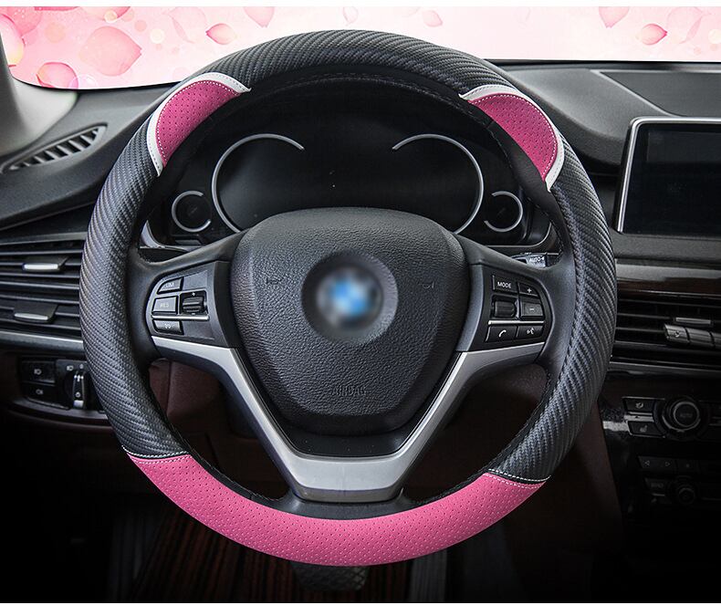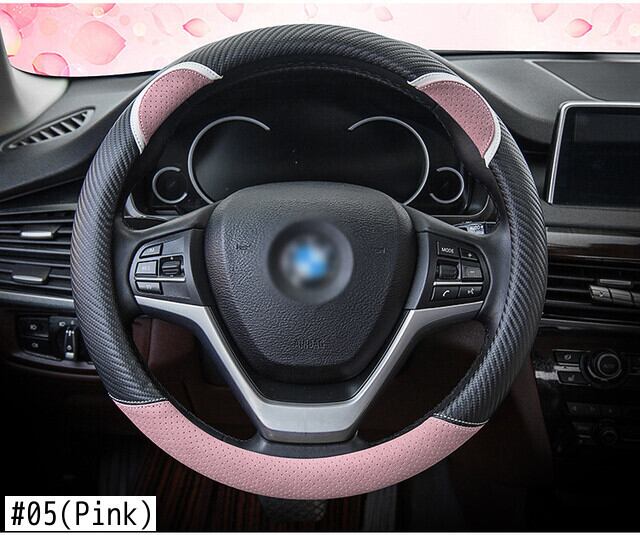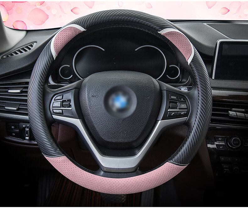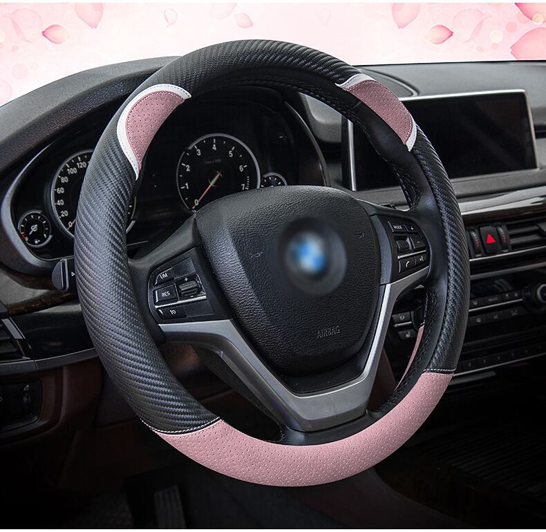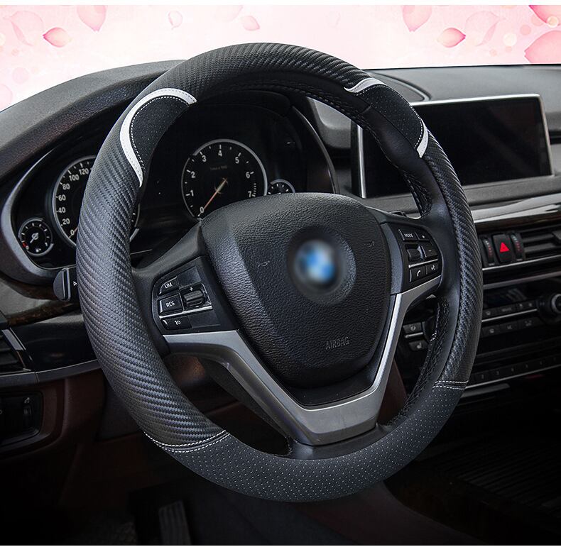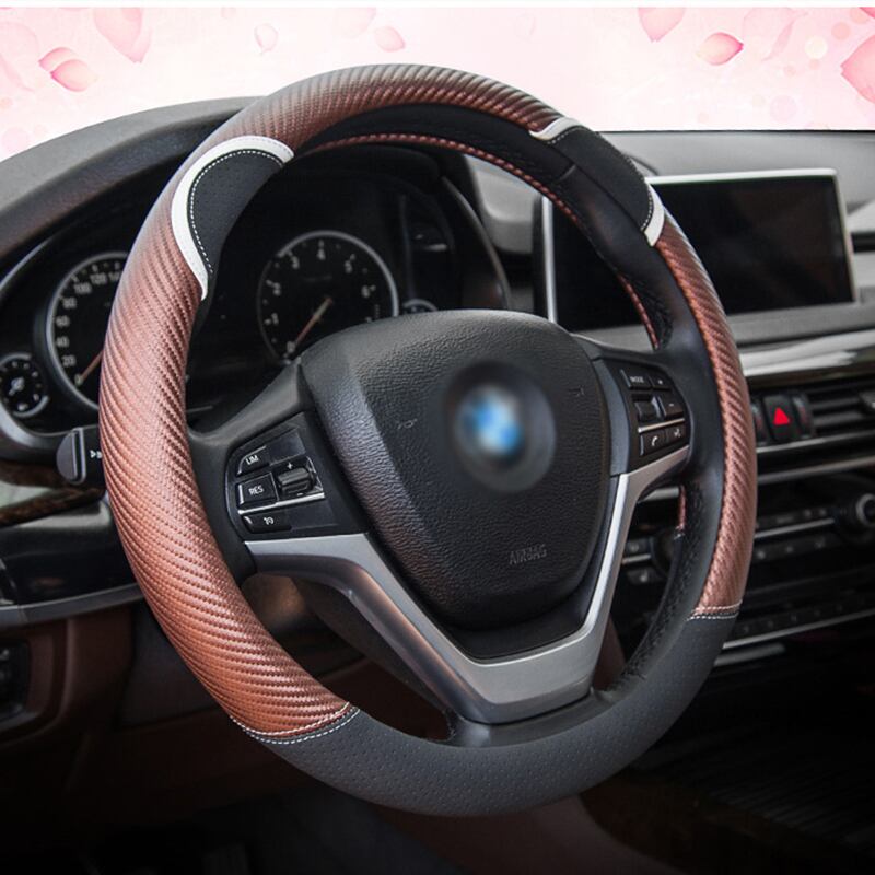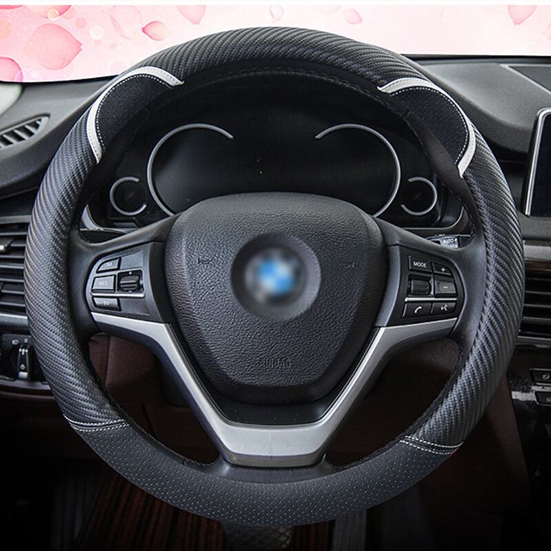 漫画の車のステアリングホイールカバー炭素繊維ステッチレザーハンドルバーセットかわいいウサギの女性モデルユニバーサル M 37/38 センチメートル