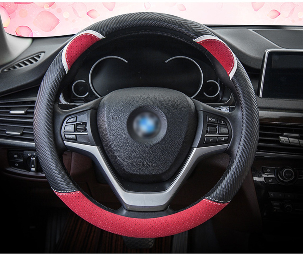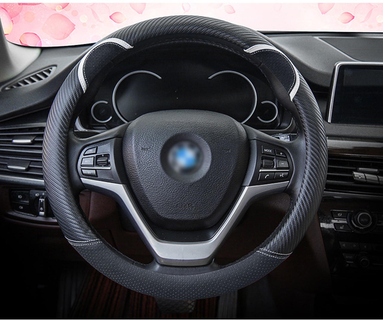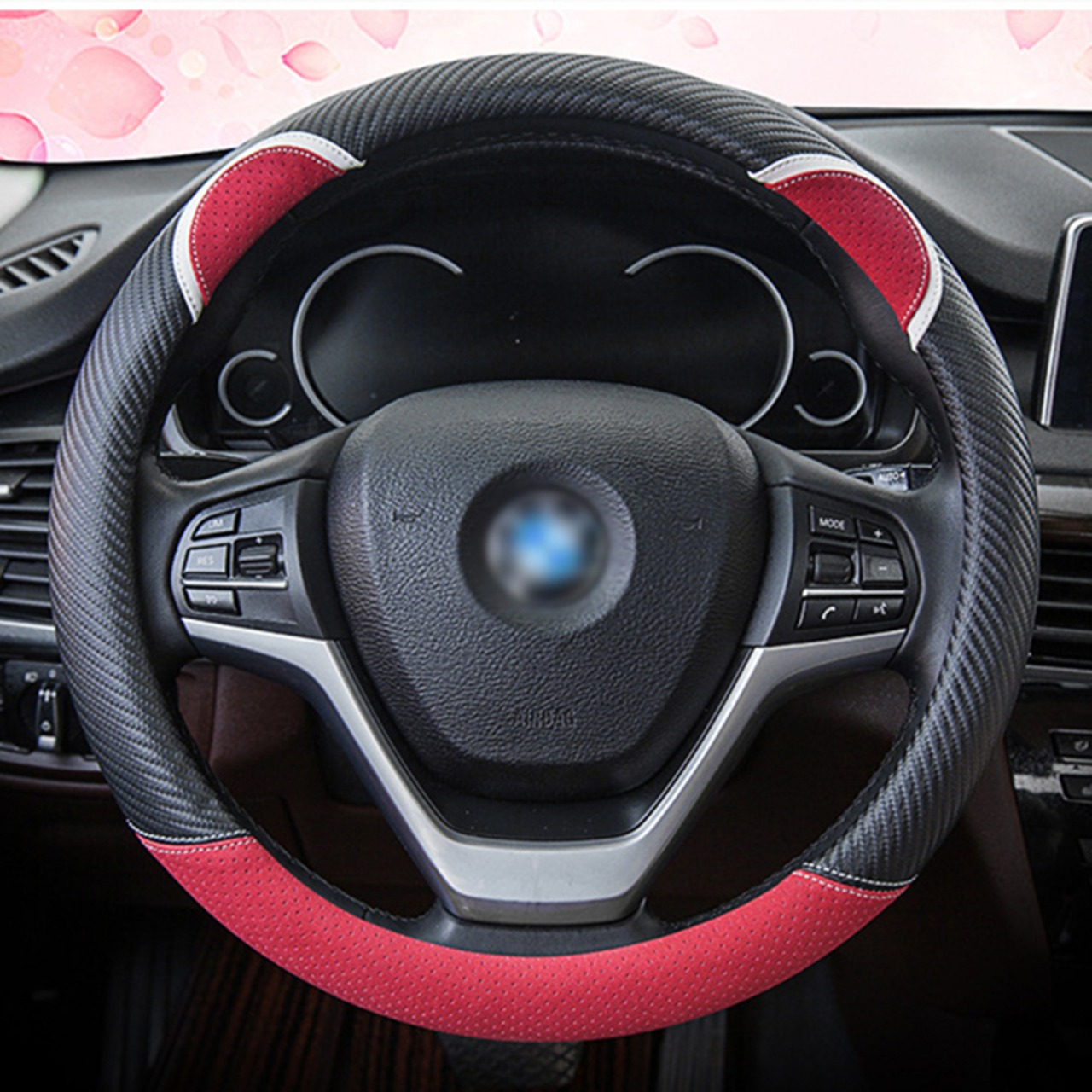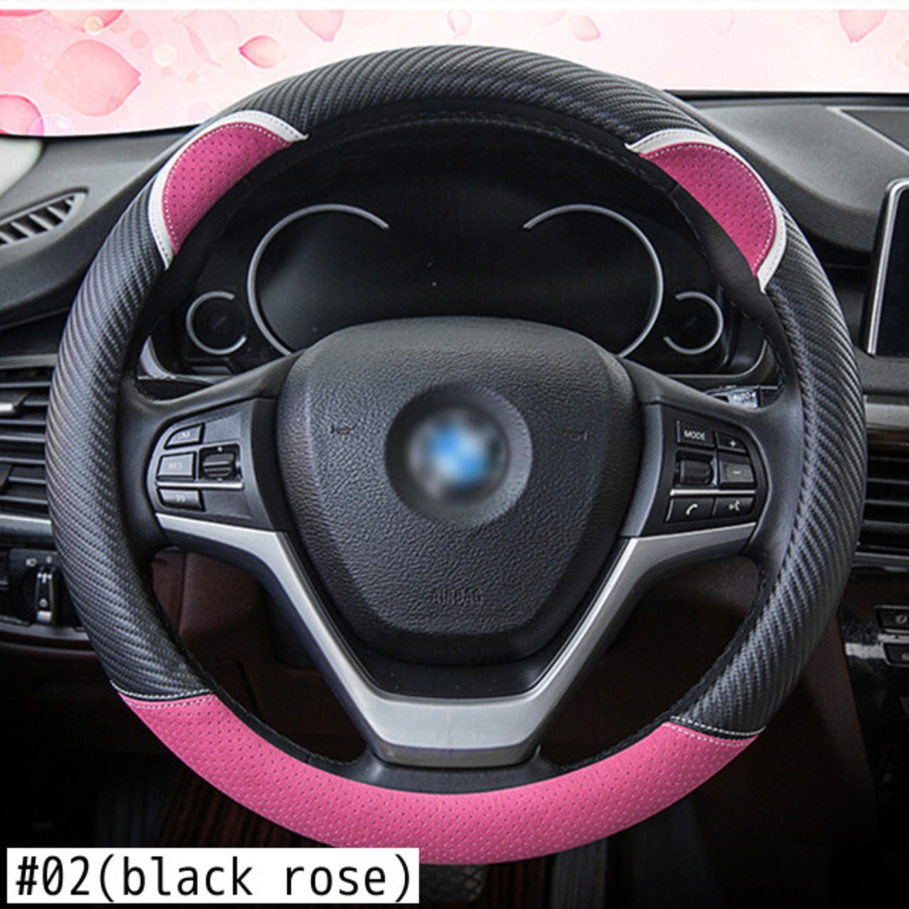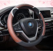 漫画の車のステアリングホイールカバー炭素繊維ステッチレザーハンドルバーセットかわいいウサギの女性モデルユニバーサル M 37/38 センチメートル
