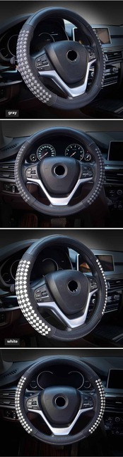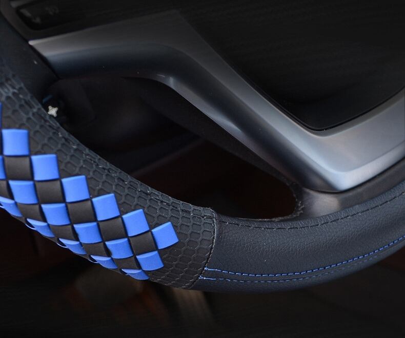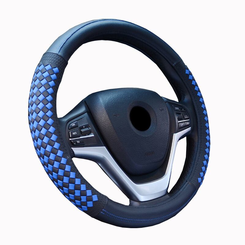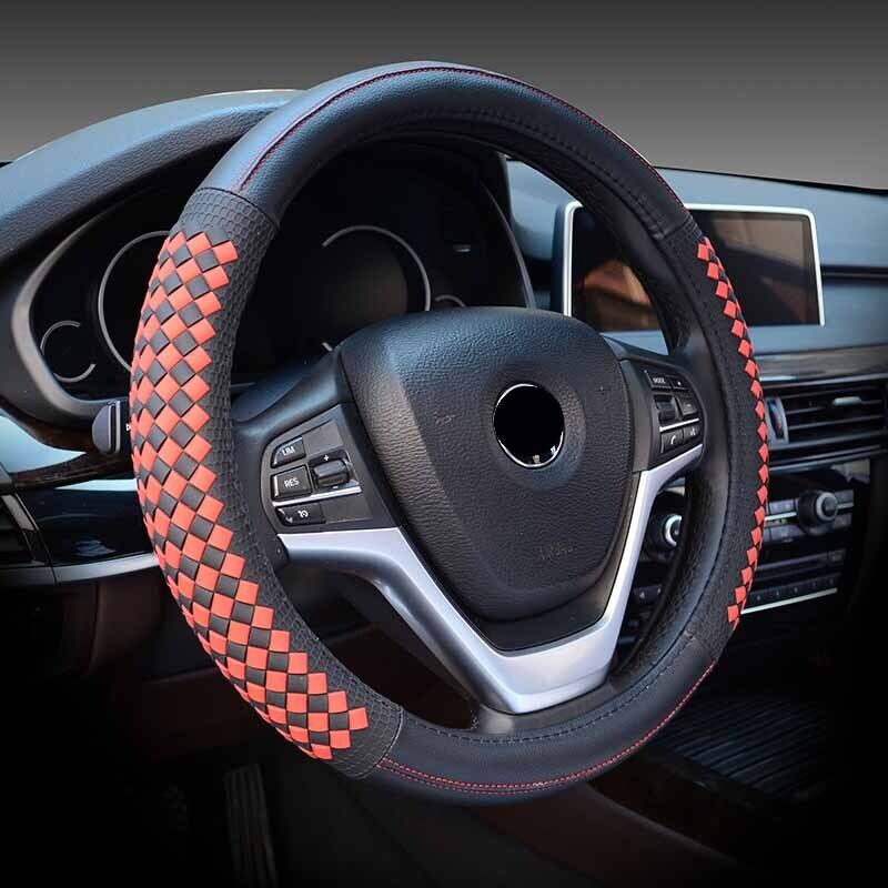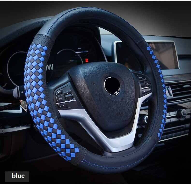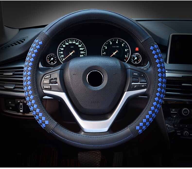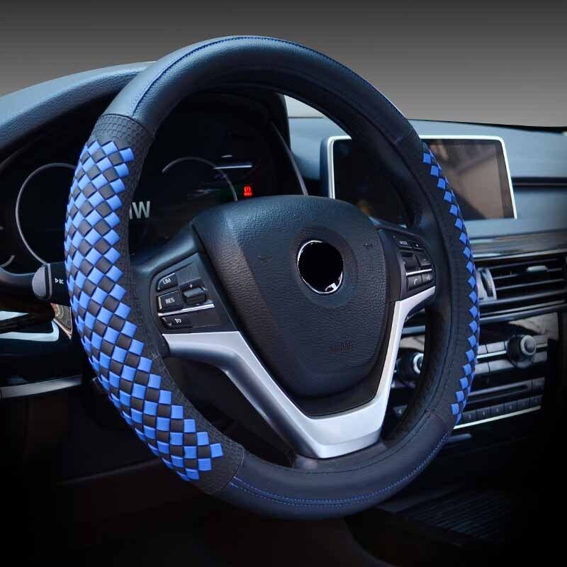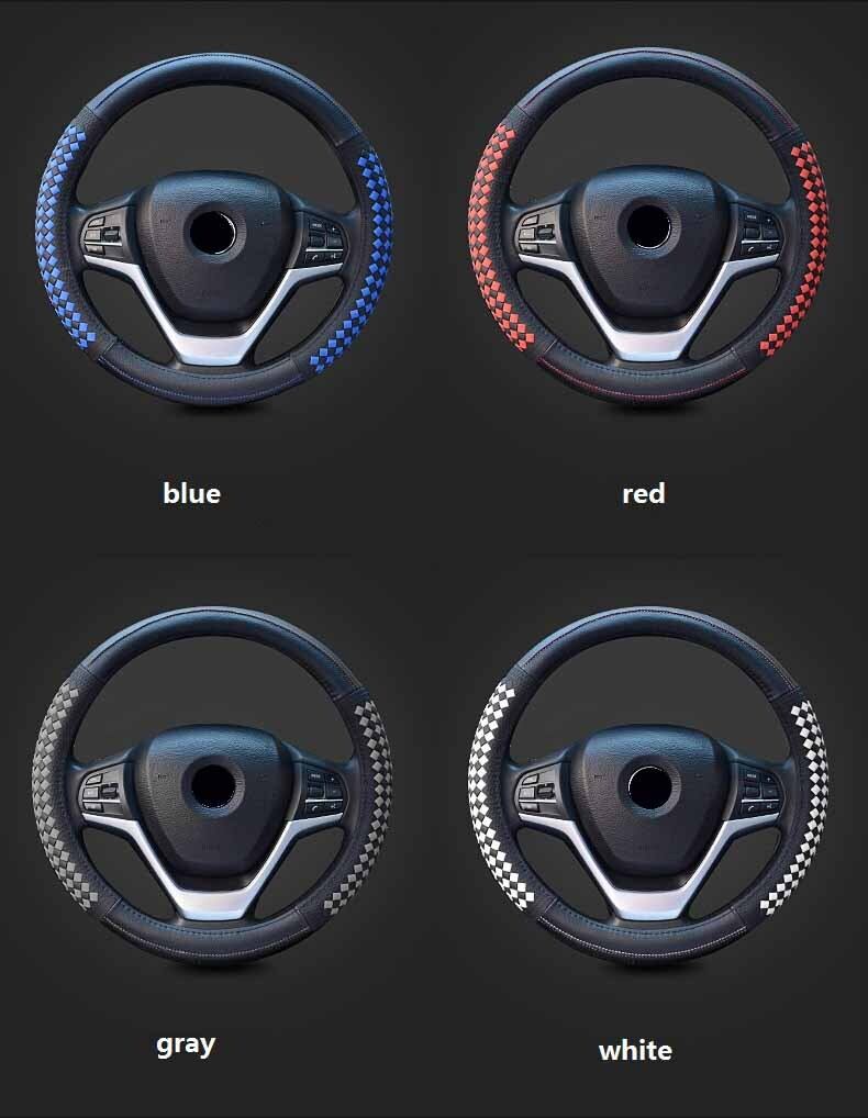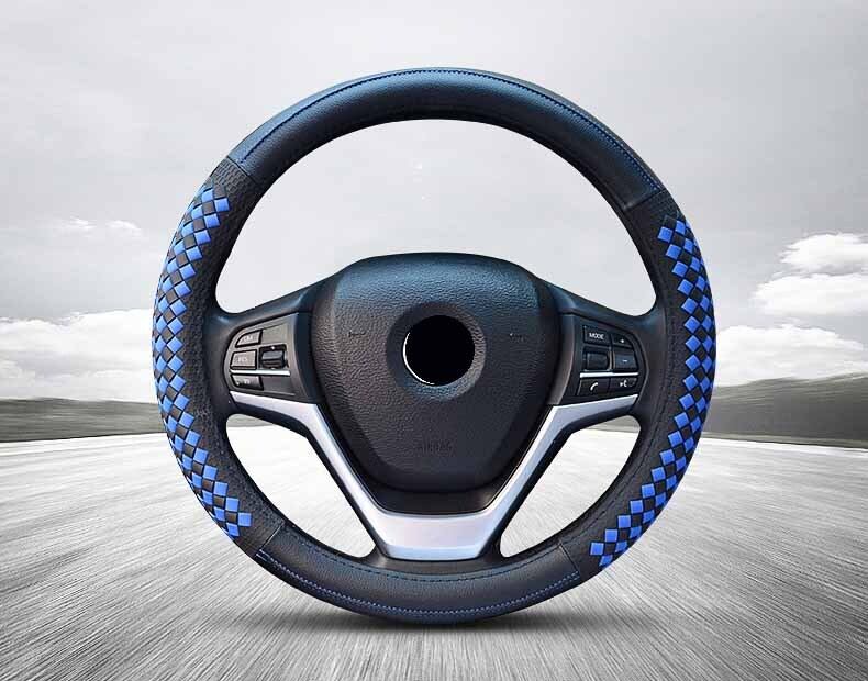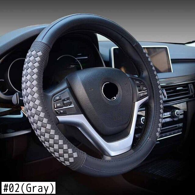高級ダイヤモンド織りグレインレザー車のステアリングホイールカバーユニバーサルスポーツステアリングホイールカバーケース自動車の付属品 | アウトドア キャンプ用品・テントやタープ・シュラフ、マットなどワクワクが止まらない【未来志向ショップ】