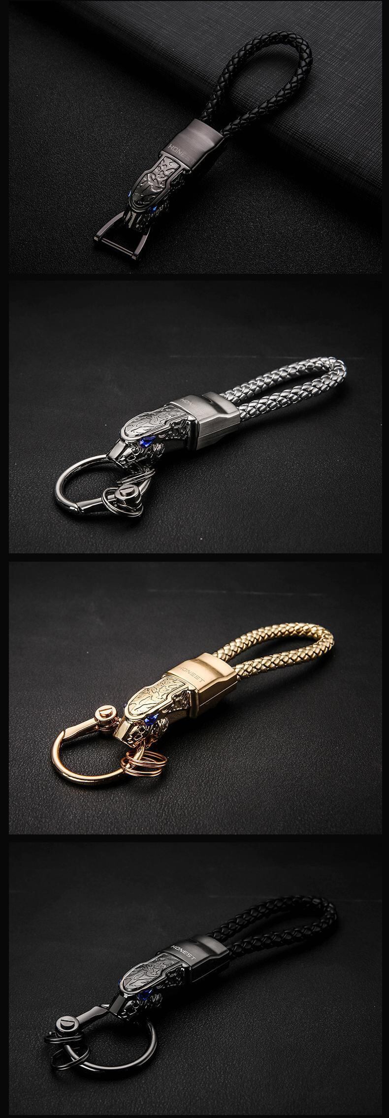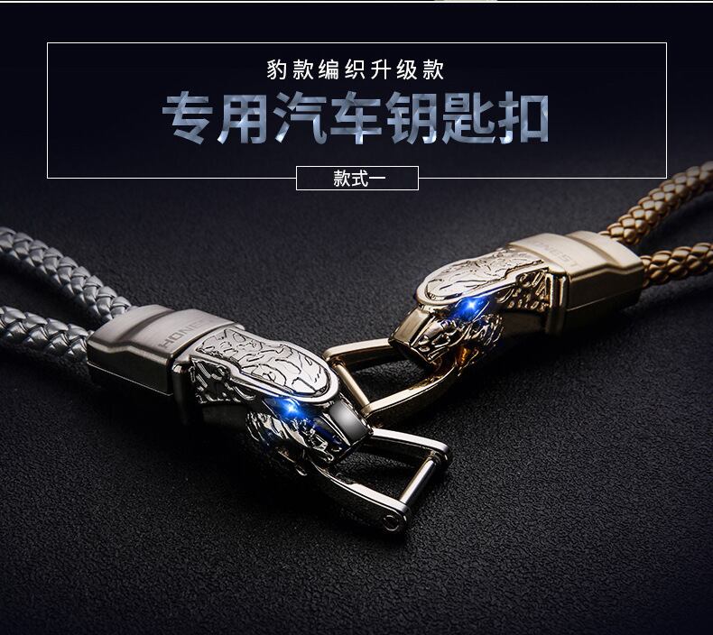 キーホルダーヒョウヘッドキーリング男性ギフトブルーダイヤモンド車のキーアクセサリーペンダント編組ロープメルセデスアウディ VW ゴルフ起亜 | アウトドア キャンプ用品・テントやタープ・シュラフ、マットなどワクワクが止まらない【未来志向ショップ】