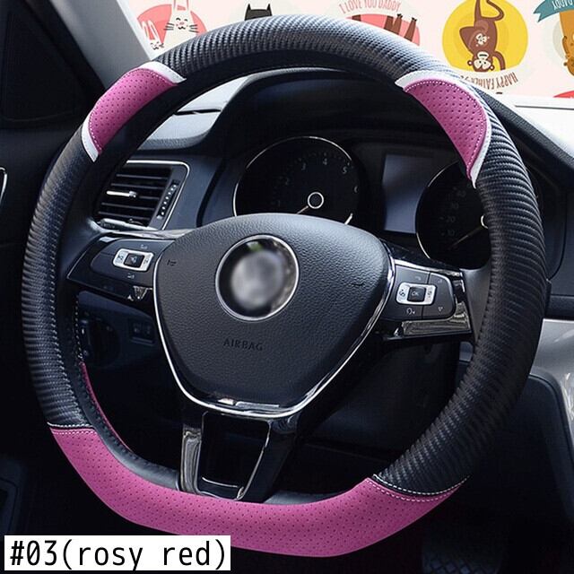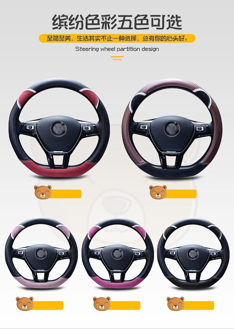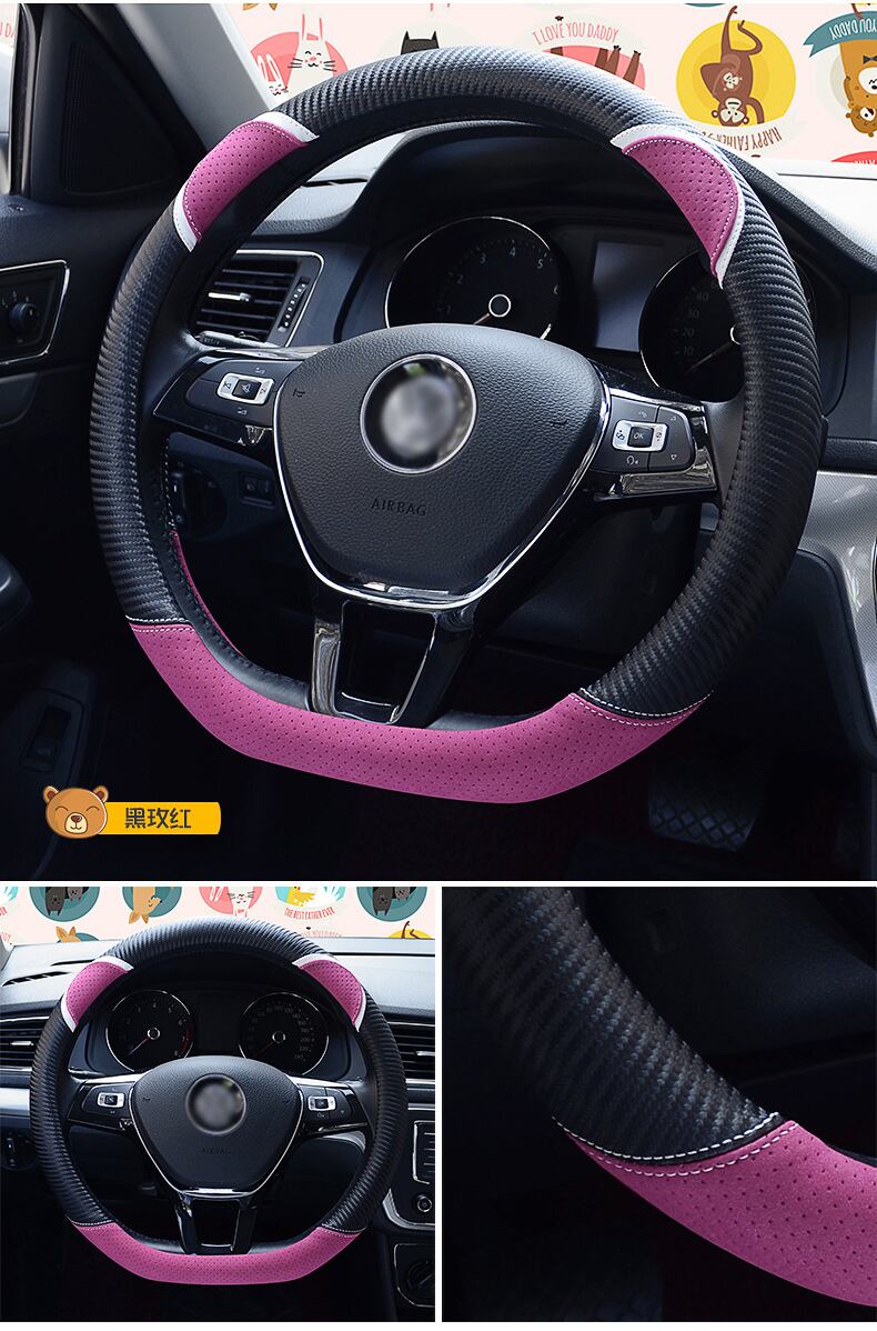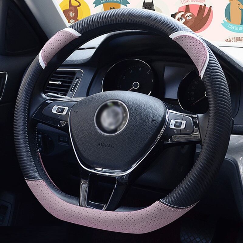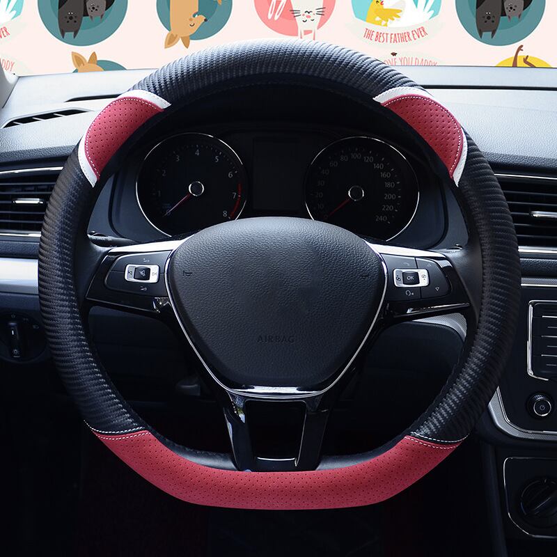 D 形状の車のハンドルカバーかわいいウサギの女性のスタイリング炭素繊維革ハンドルバーカバー四季ユニバーサル 37/38 センチメートル | アウトドア キャンプ用品・テントやタープ・シュラフ、マットなどワクワクが止まらない【未来志向ショップ】