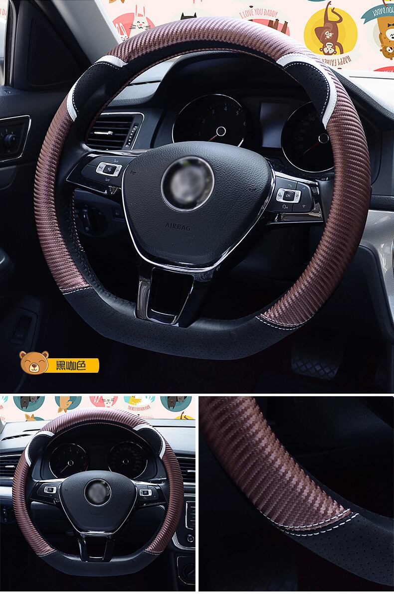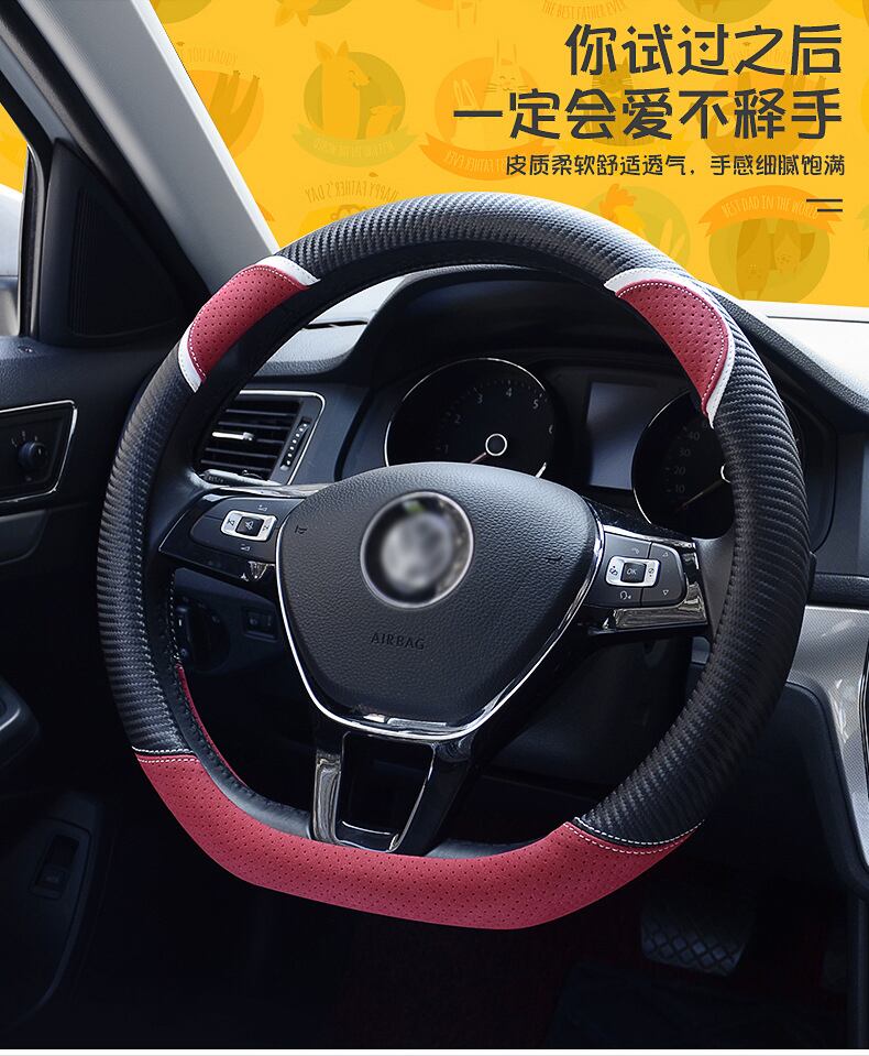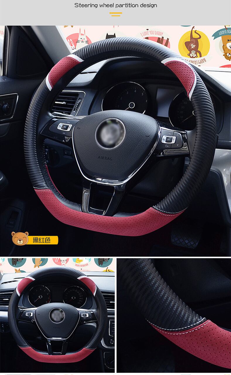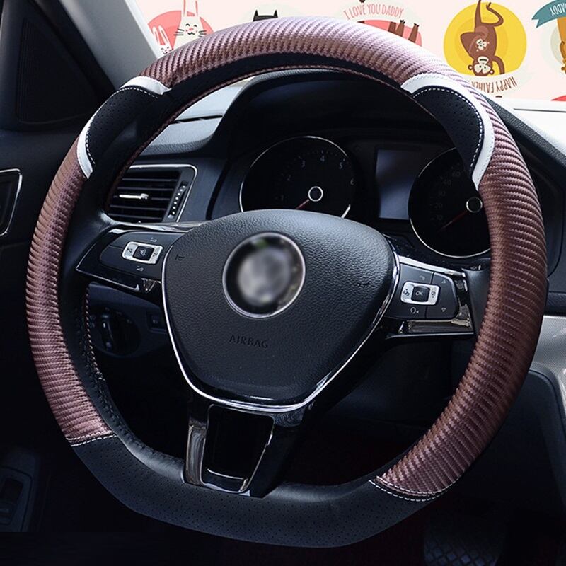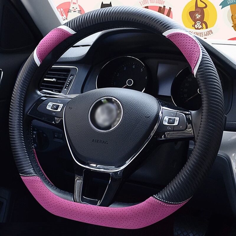D 形状の車のハンドルカバーかわいいウサギの女性のスタイリング炭素繊維革ハンドルバーカバー四季ユニバーサル 37/38 センチメートル | アウトドア キャンプ用品・テントやタープ・シュラフ、マットなどワクワクが止まらない【未来志向ショップ】