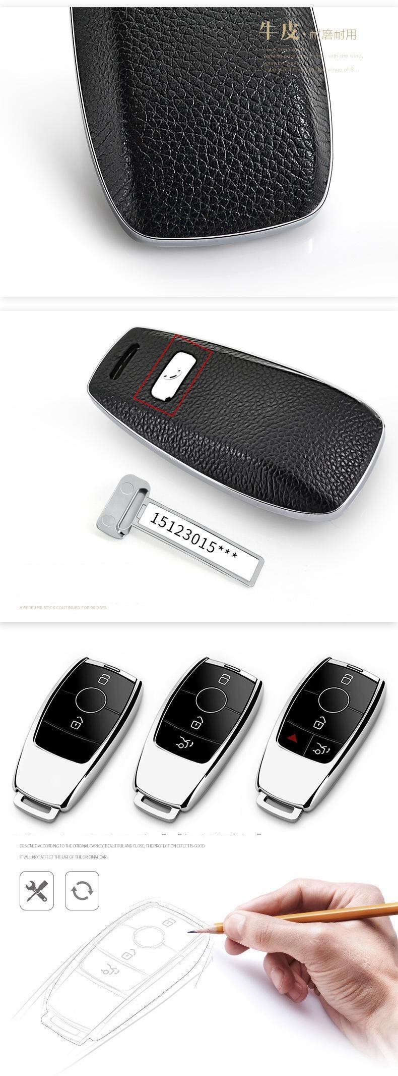 キーバッグ バックル レザー 車のキーケース カバー キーホルダー メルセデスベンツ E-cl E200L E300L 電話番号カード付き 紛失防止