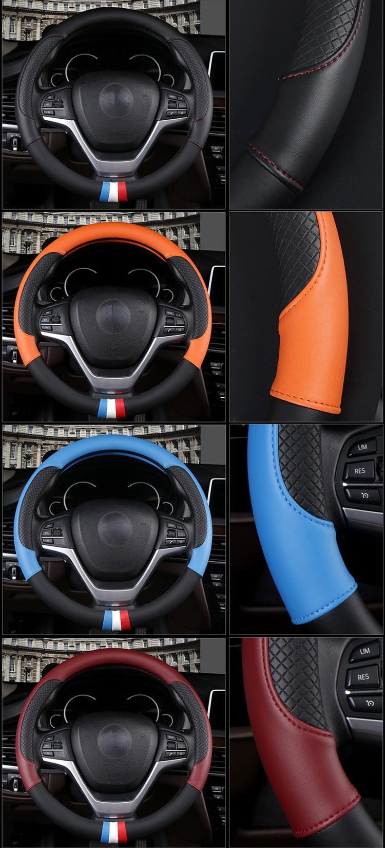 車のハンドルカバー 38 センチメートルステッチハンドルカバー D 形状インテリアカーアクセサリー Bmw アウディフォルクスワーゲンスバル | アウトドア キャンプ用品・テントやタープ・シュラフ、マットなどワクワクが止まらない【未来志向ショップ】