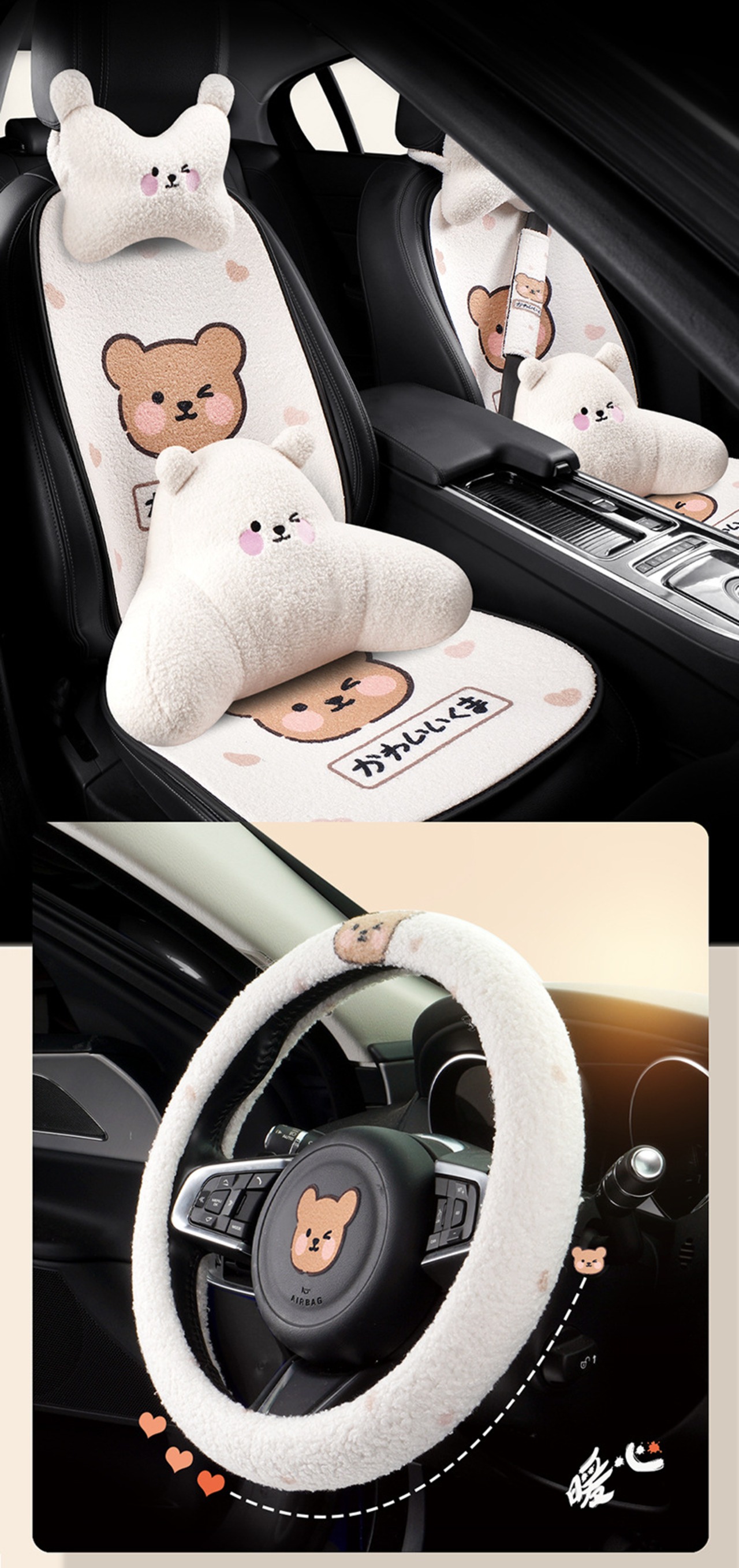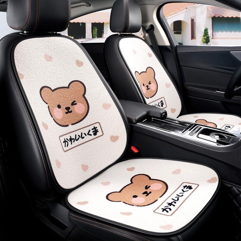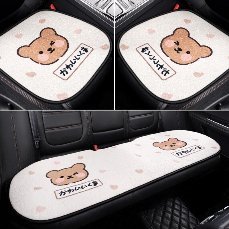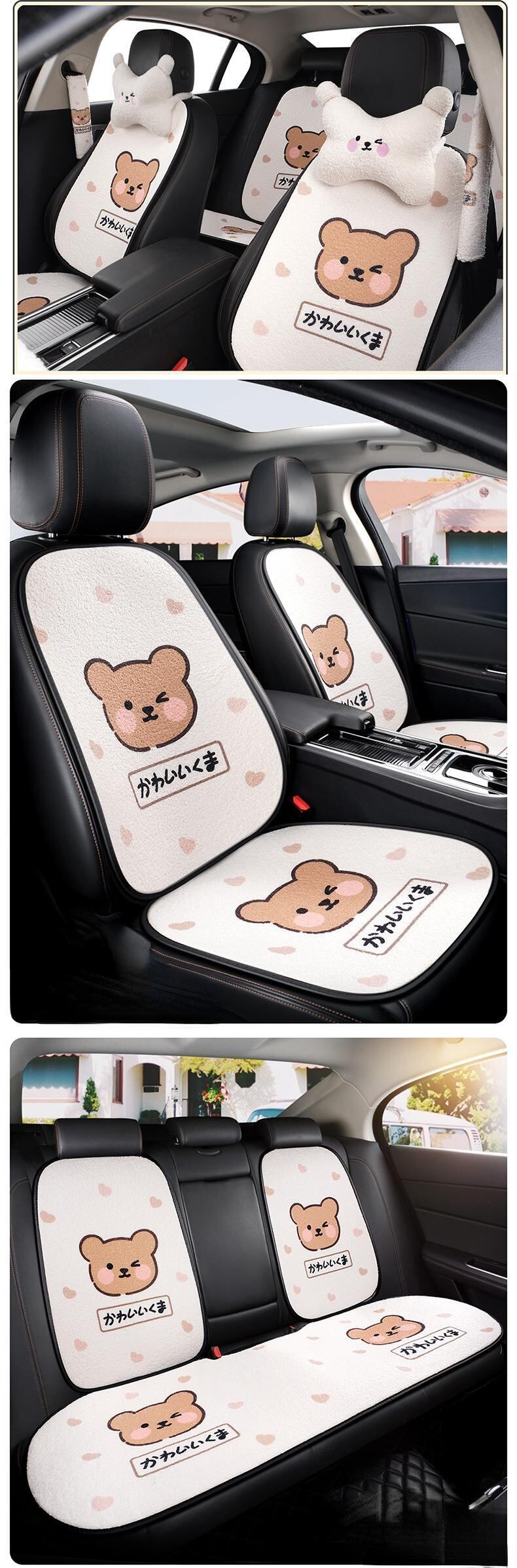カーシートカバーセット ハンドルカバー ユニバーサル シートクッション クマ 車 インテリア かわいい インテリア 小物 女性