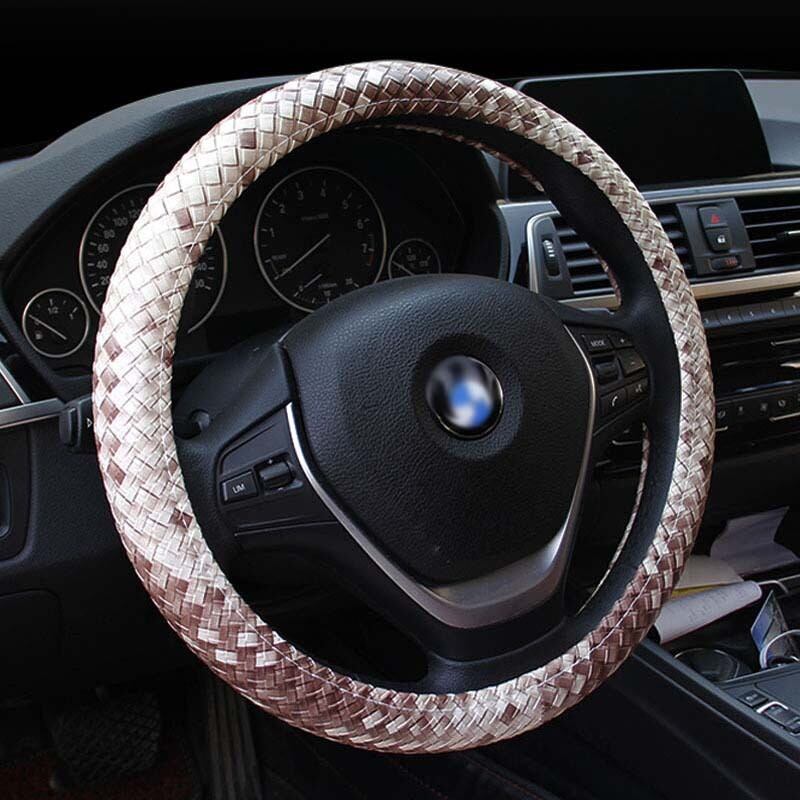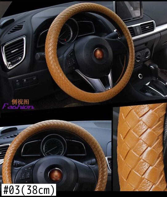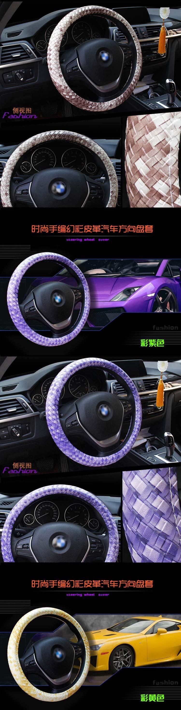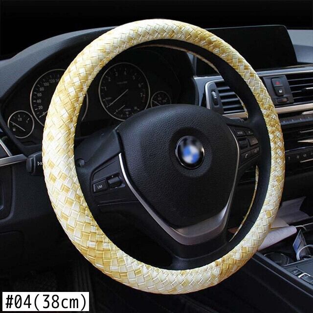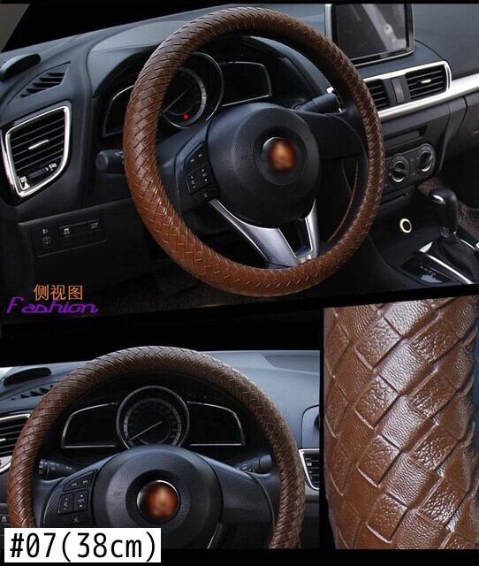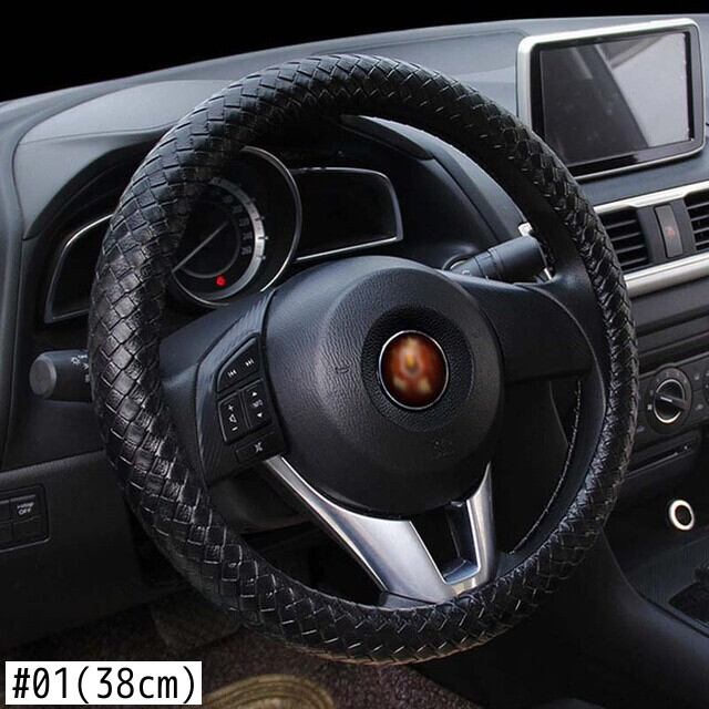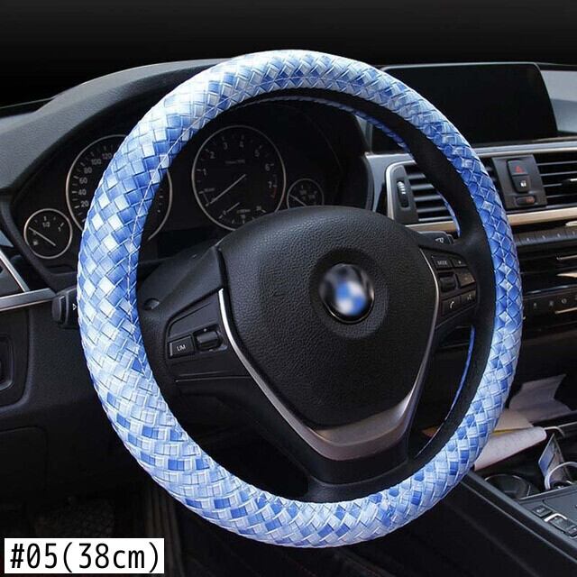 レザーハンドルカバー 滑り止め編組カバー スタイリング Mサイズ 直径38cm/15インチにフィット ブラック ブルー ホワイト ライチ柄 | アウトドア キャンプ用品・テントやタープ・シュラフ、マットなどワクワクが止まらない【未来志向ショップ】