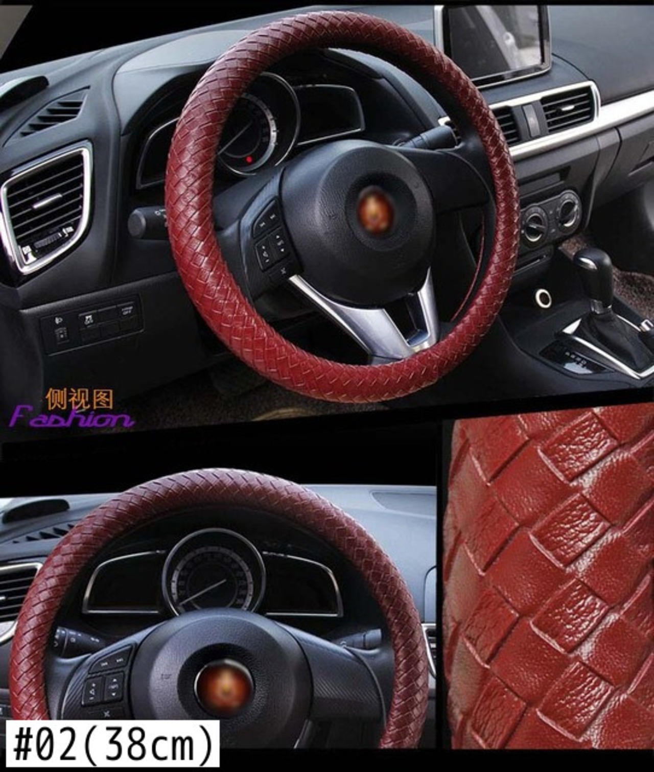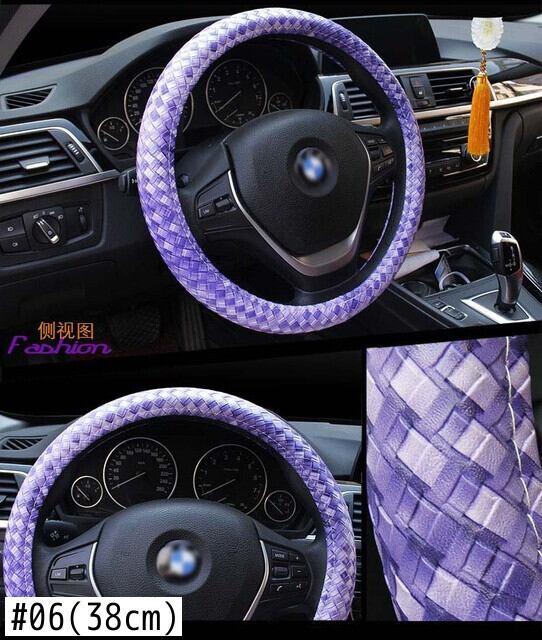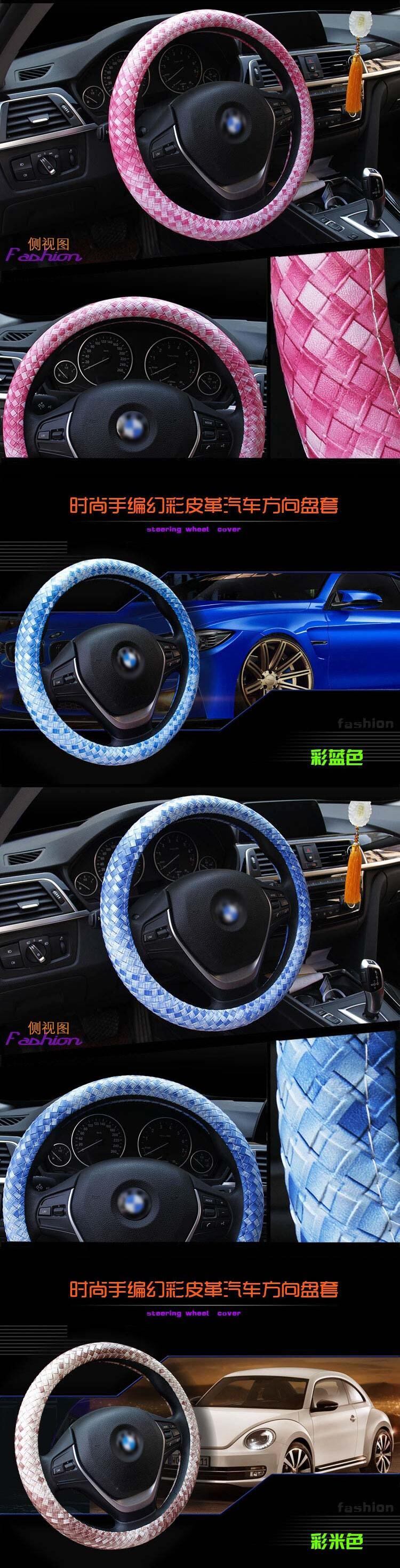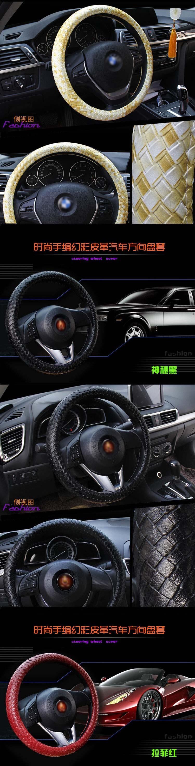 レザーハンドルカバー 滑り止め編組カバー スタイリング Mサイズ 直径38cm/15インチにフィット ブラック ブルー ホワイト ライチ柄 | アウトドア キャンプ用品・テントやタープ・シュラフ、マットなどワクワクが止まらない【未来志向ショップ】