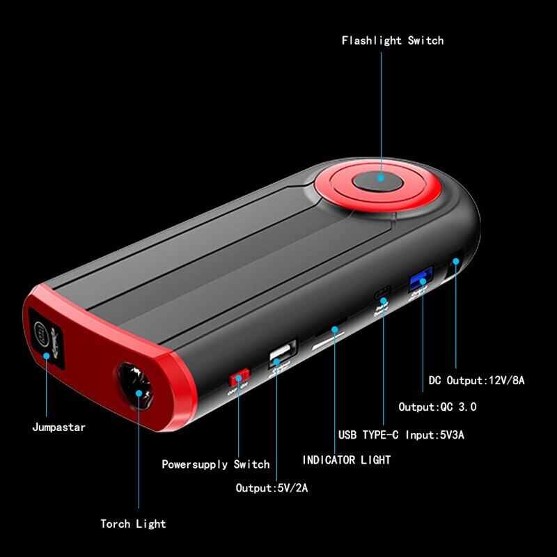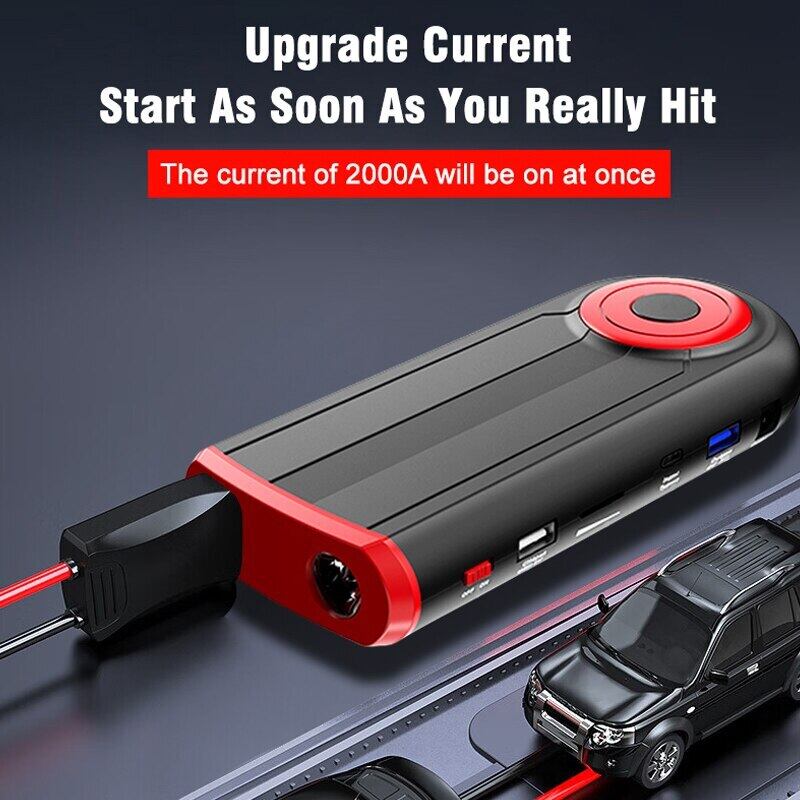 12V 22000mAh 車のジャンプスターター 2000A カーバッテリースターター ポータブルパワーバンクブースター 自動始動装置 緊急スタート