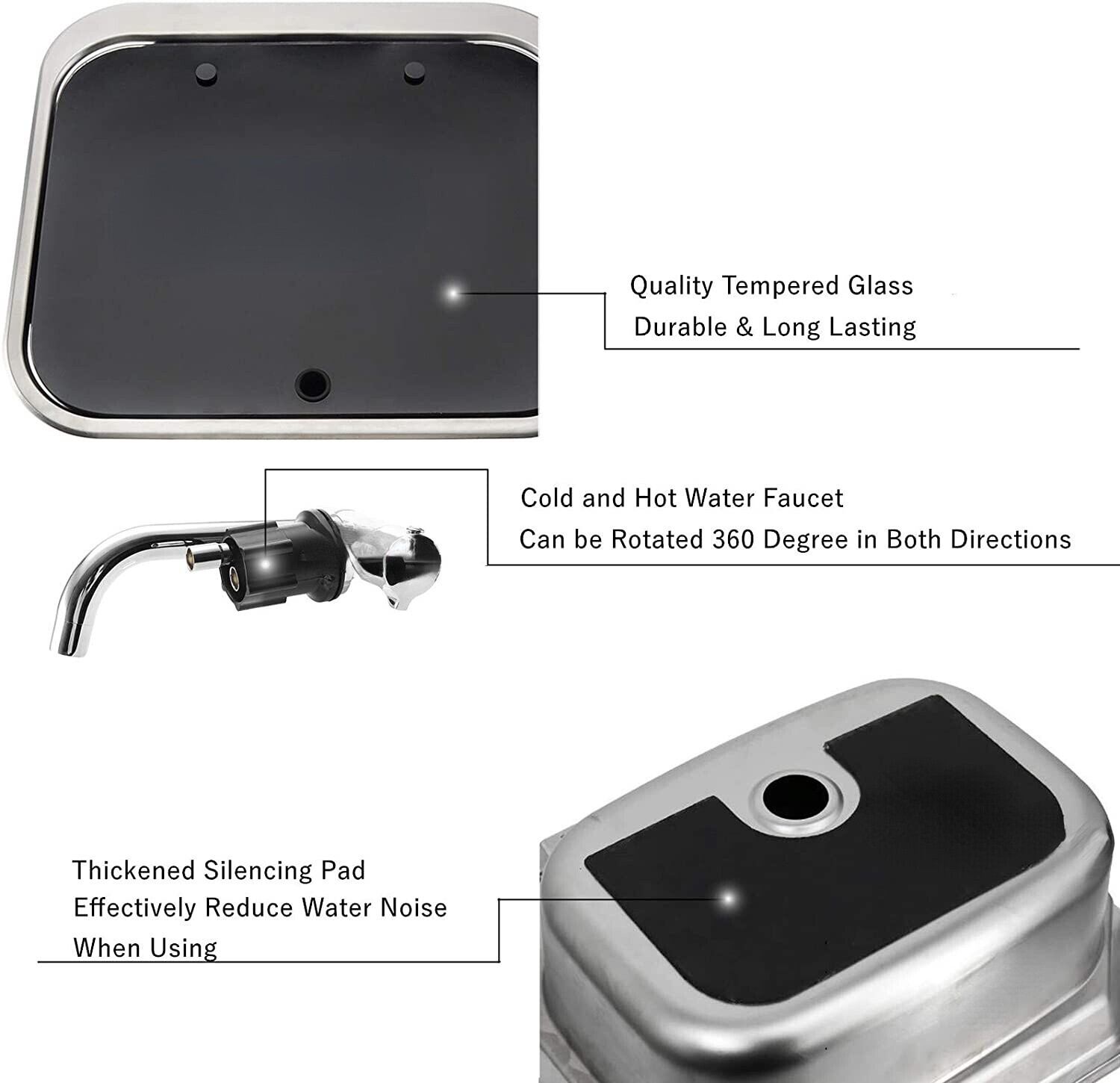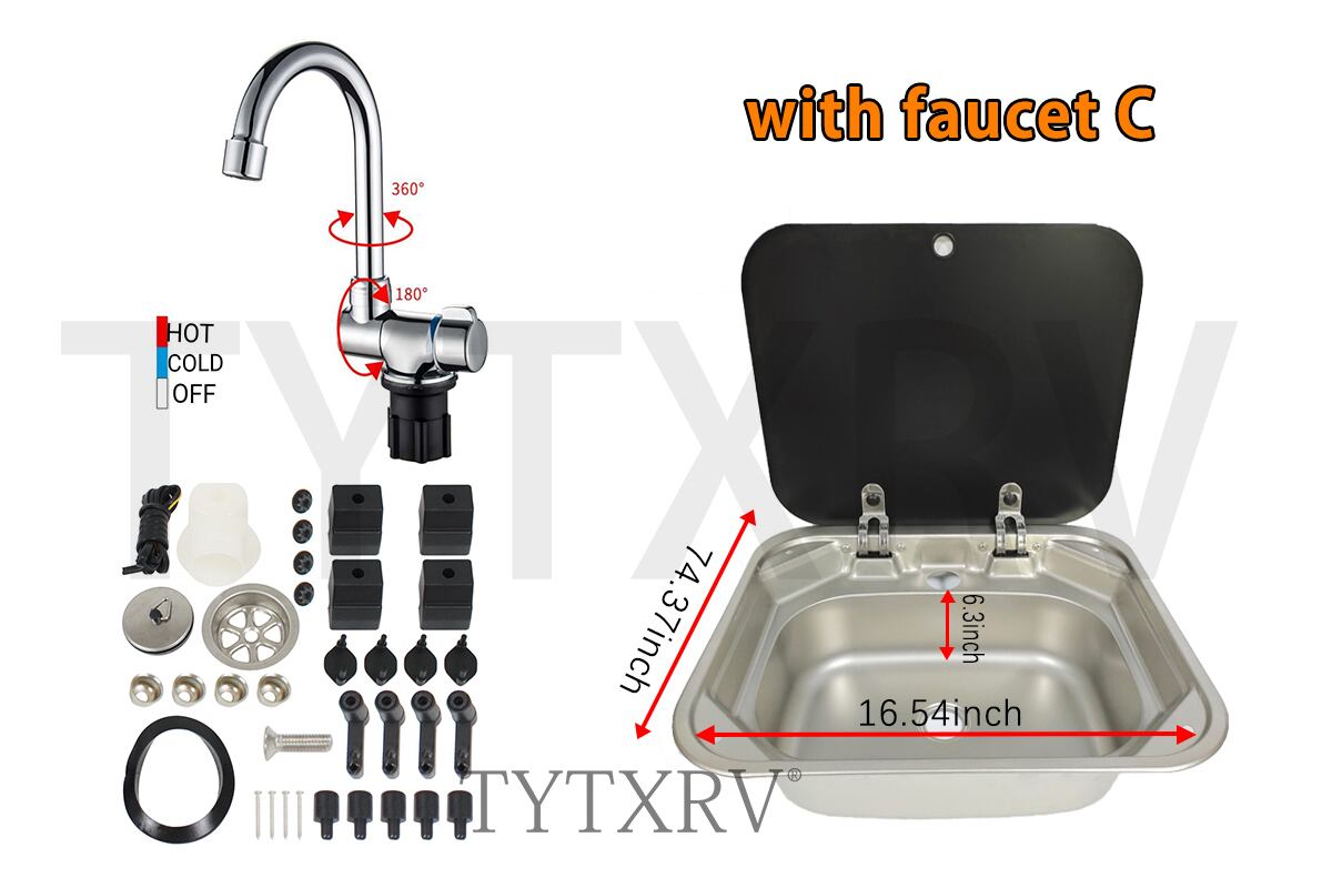TYTXRV RV キャラバン アクセサリー 420mm 強化 Gl カバー スクエア ステンレススチール RV キッチン キャラバン キャンピングカー シンク