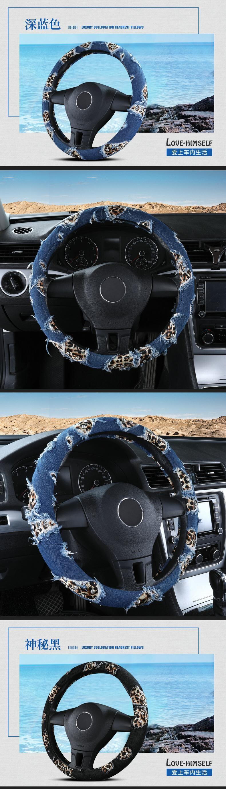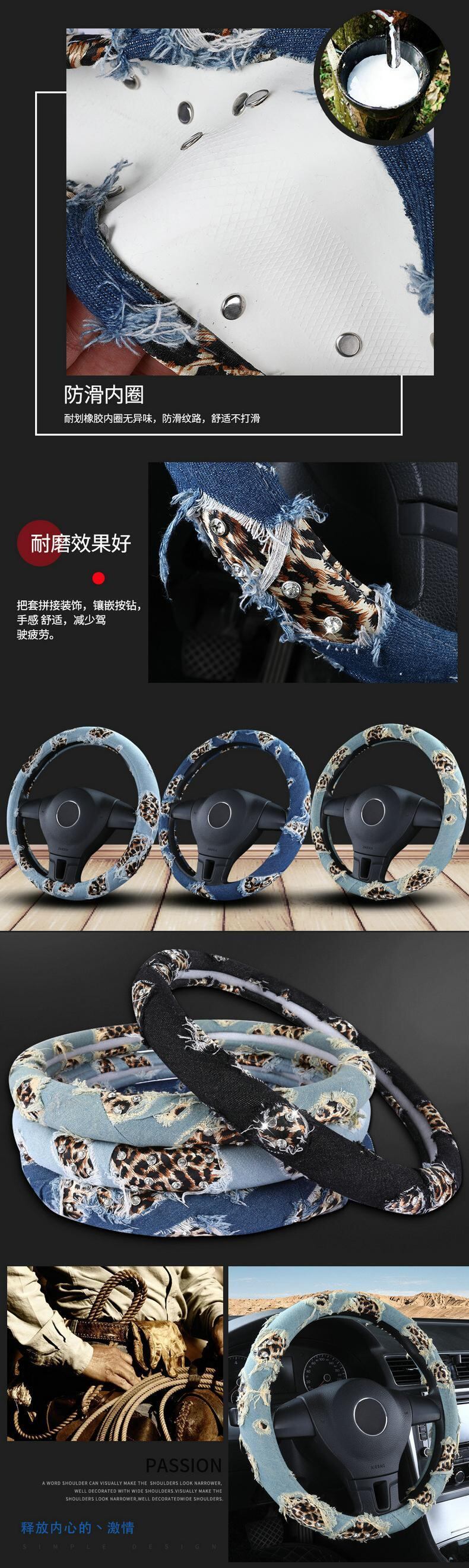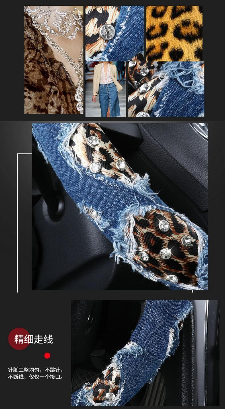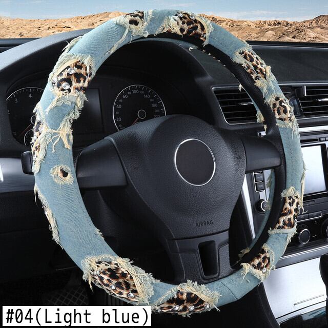 ヒョウデニム車のハンドルカバー 38 センチメートルストリートダイヤモンドカーアクセサリーガールズ装飾女性ユニバーサル | アウトドア キャンプ用品・テントやタープ・シュラフ、マットなどワクワクが止まらない【未来志向ショップ】