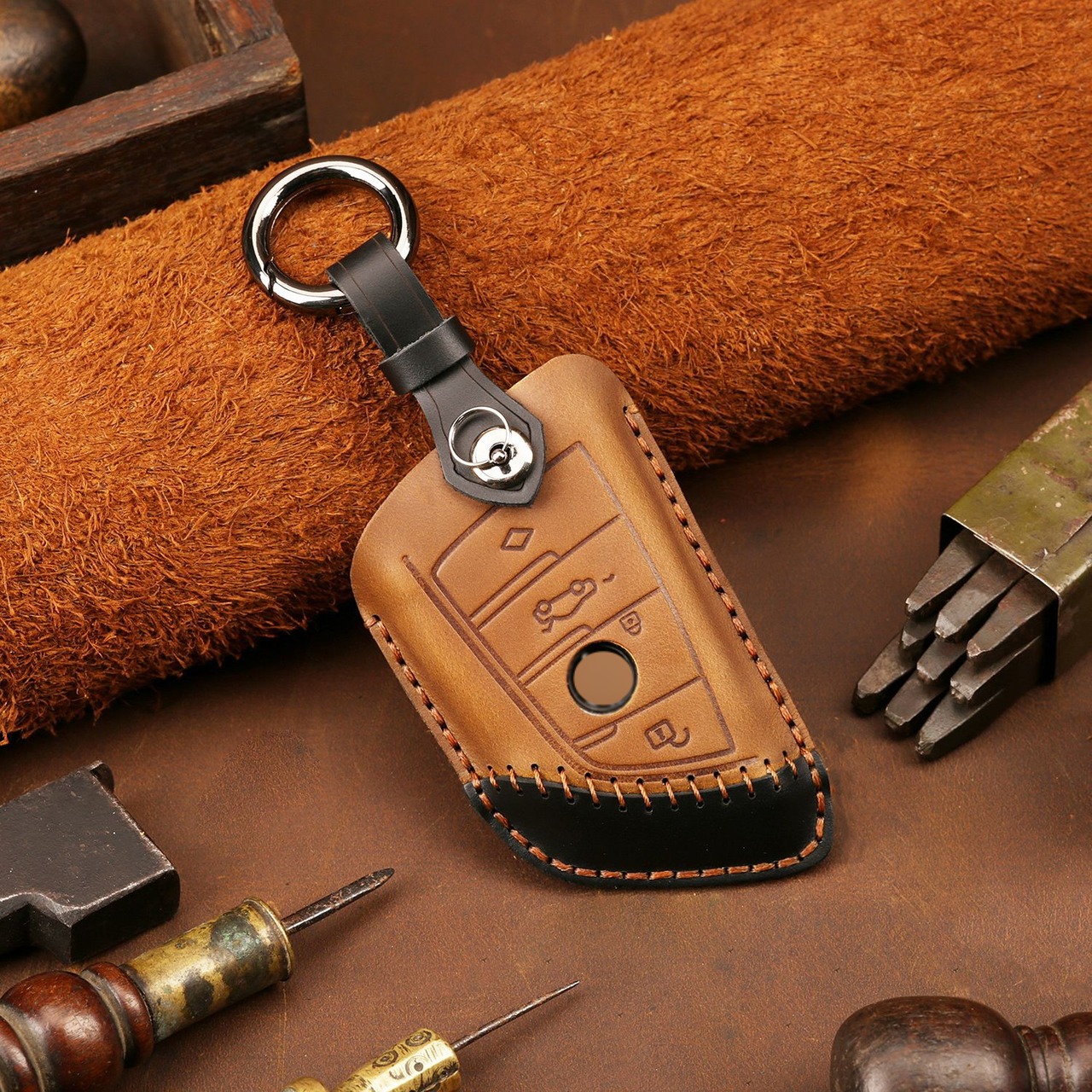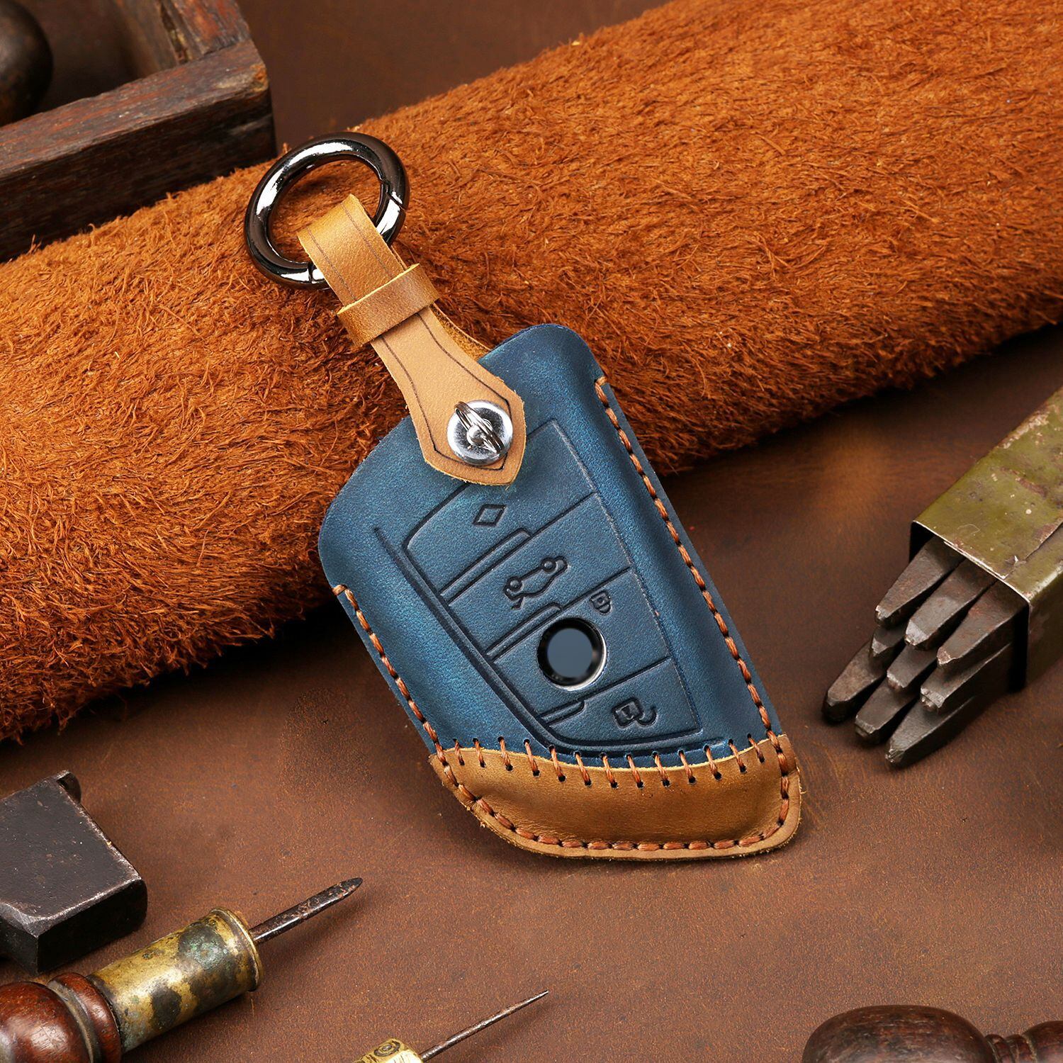車のキーケースカバー BMW 5 X5 E70 E39 E60 F10 F15 ブレード 手作り キーカバー キーホルダー 本革 アクセサリー