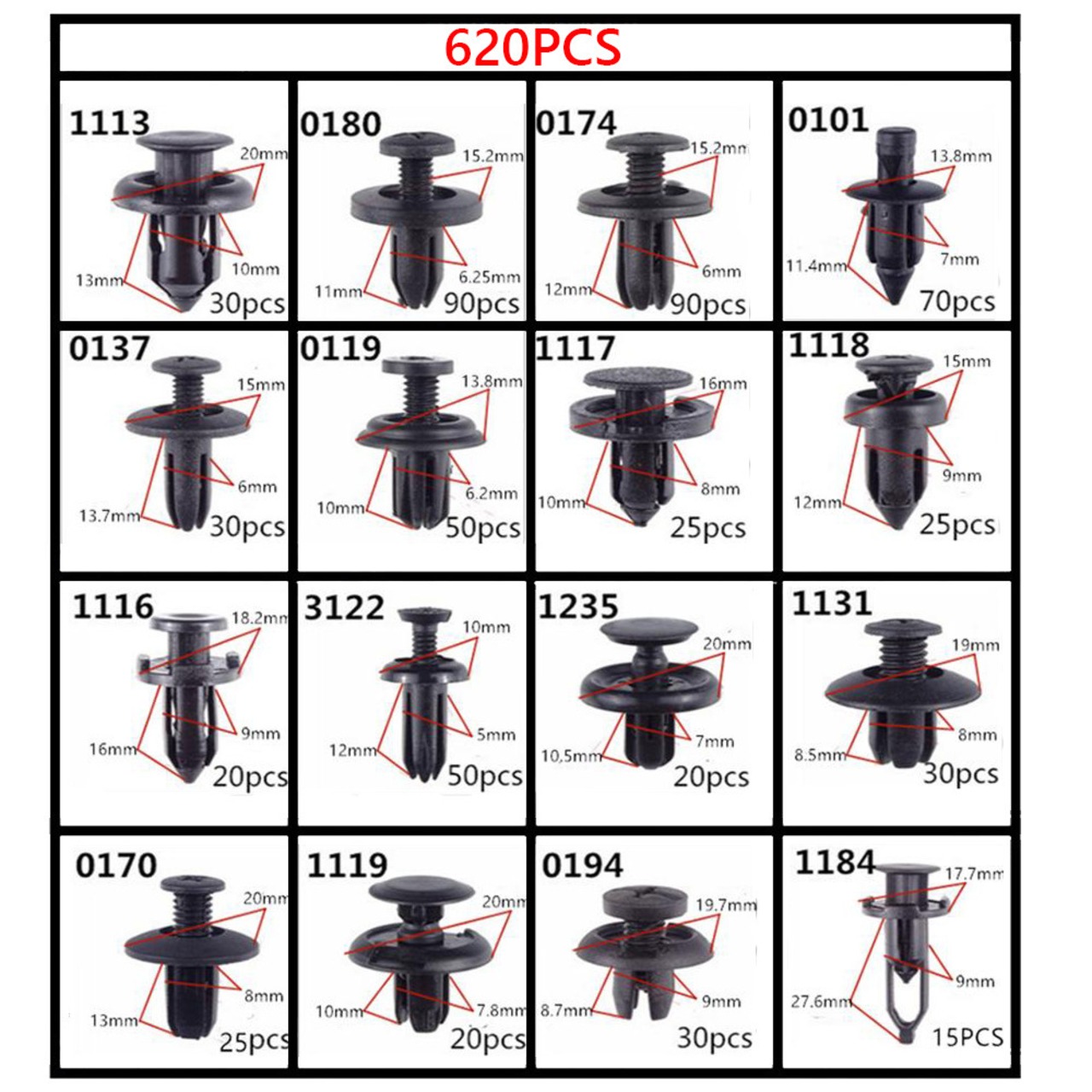 24 サイズまたは 16 サイズ 620 個自動車ファスナー クリップ混合車体プッシュ リテーナー ピン リベット バンパー ドア トリム パネル リテーナー ファスナー キット | アウトドア キャンプ用品・テントやタープ・シュラフ、マットなどワクワクが止まらない【未来志向ショップ】