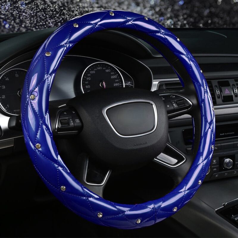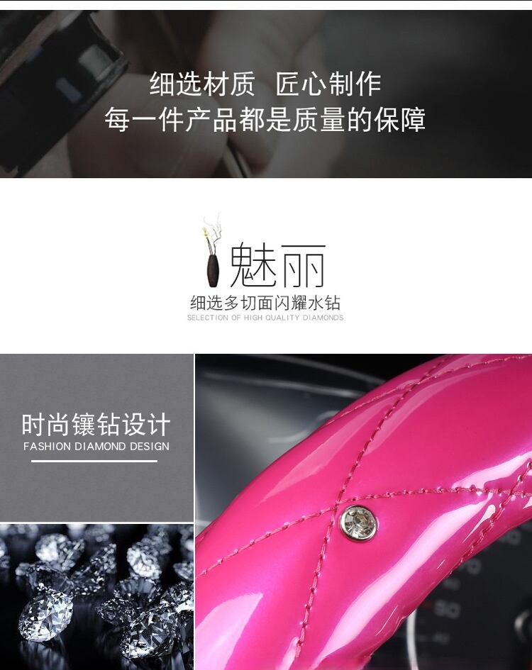 車のダイヤモンド ハンドル カバー ガールズ 38 Cm ダイヤモンド ストライプ インデント女性ブライト パテント レザー ローズ レッド グリップ カバー | アウトドア キャンプ用品・テントやタープ・シュラフ、マットなどワクワクが止まらない【未来志向ショップ】