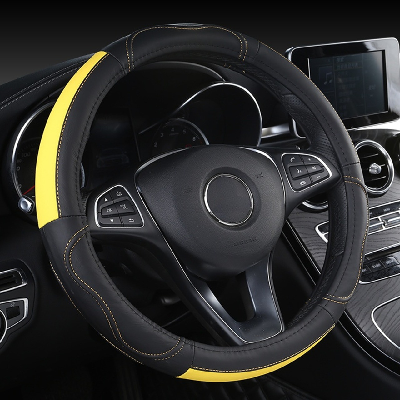 車のハンドルカバーセット 35/36/37/38/39/40cm グリップカバー レザー インテリア アクセサリー Bmw ホンダ アウディ トヨタ スバル マツダ