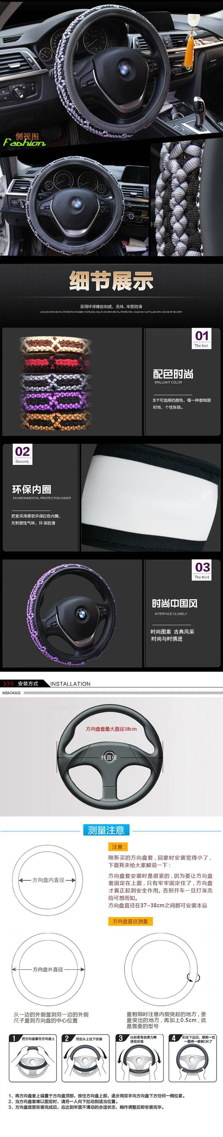 車のハンドルカバー中国アイシングシルクハンドル車のインテリアアクセサリー四季ノンスリップ手巻き車の方向セット | アウトドア キャンプ用品・テントやタープ・シュラフ、マットなどワクワクが止まらない【未来志向ショップ】