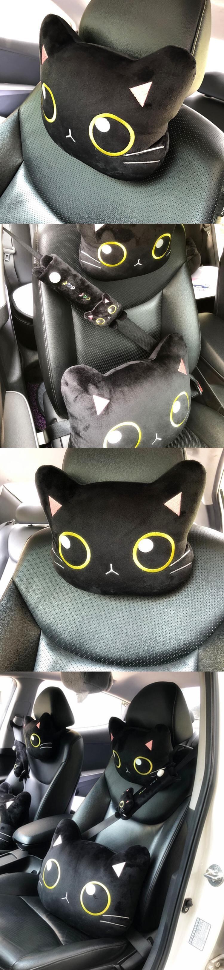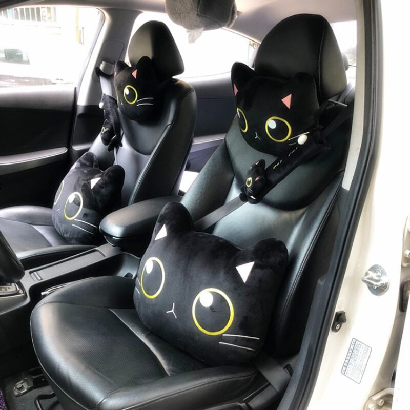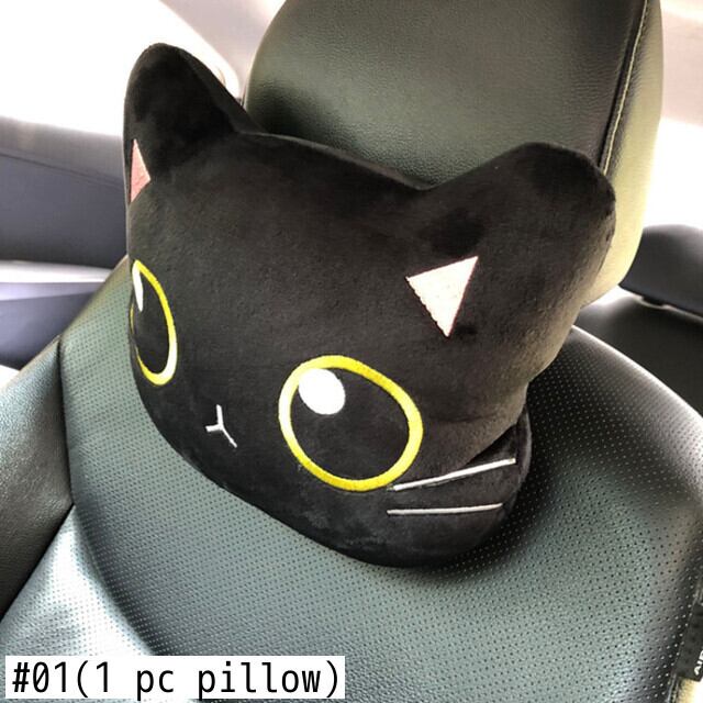 カーシートヘッドレスト首枕かわいい黒腰椎枕サポートパッドショルダーカバー自動車室内装飾アクセサリー | アウトドア キャンプ用品・テントやタープ・シュラフ、マットなどワクワクが止まらない【未来志向ショップ】