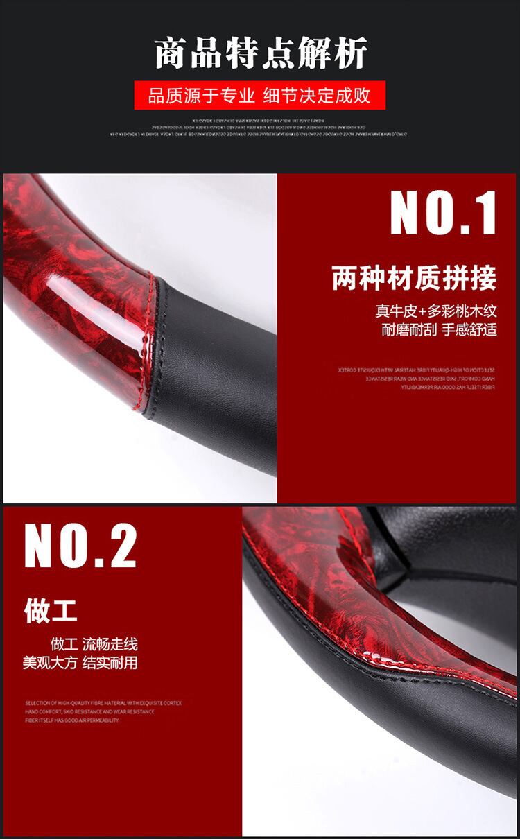 車のハンドルカバーユニバーサル 37/38 センチメートルノンスリップ通気性グリップカバーレザーステッチピーチウッドスポーツ手縫い | アウトドア キャンプ用品・テントやタープ・シュラフ、マットなどワクワクが止まらない【未来志向ショップ】